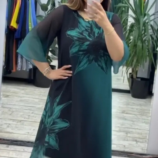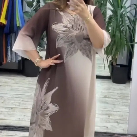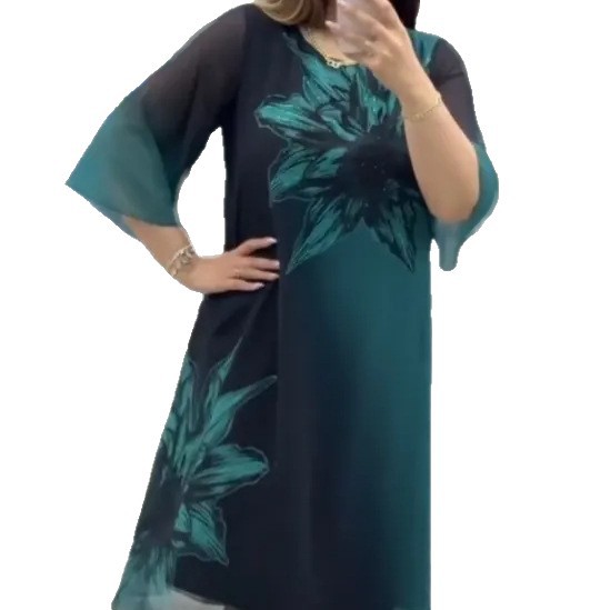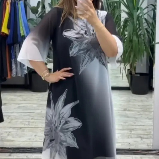 2025新款欧美跨境亚马逊春秋时尚圆领印花连衣裙