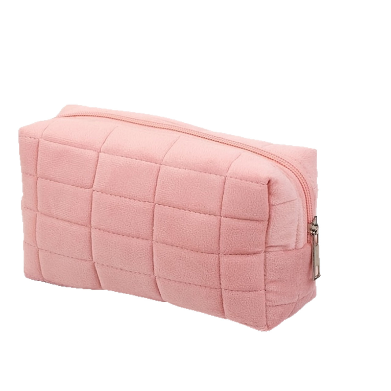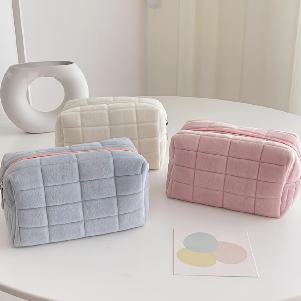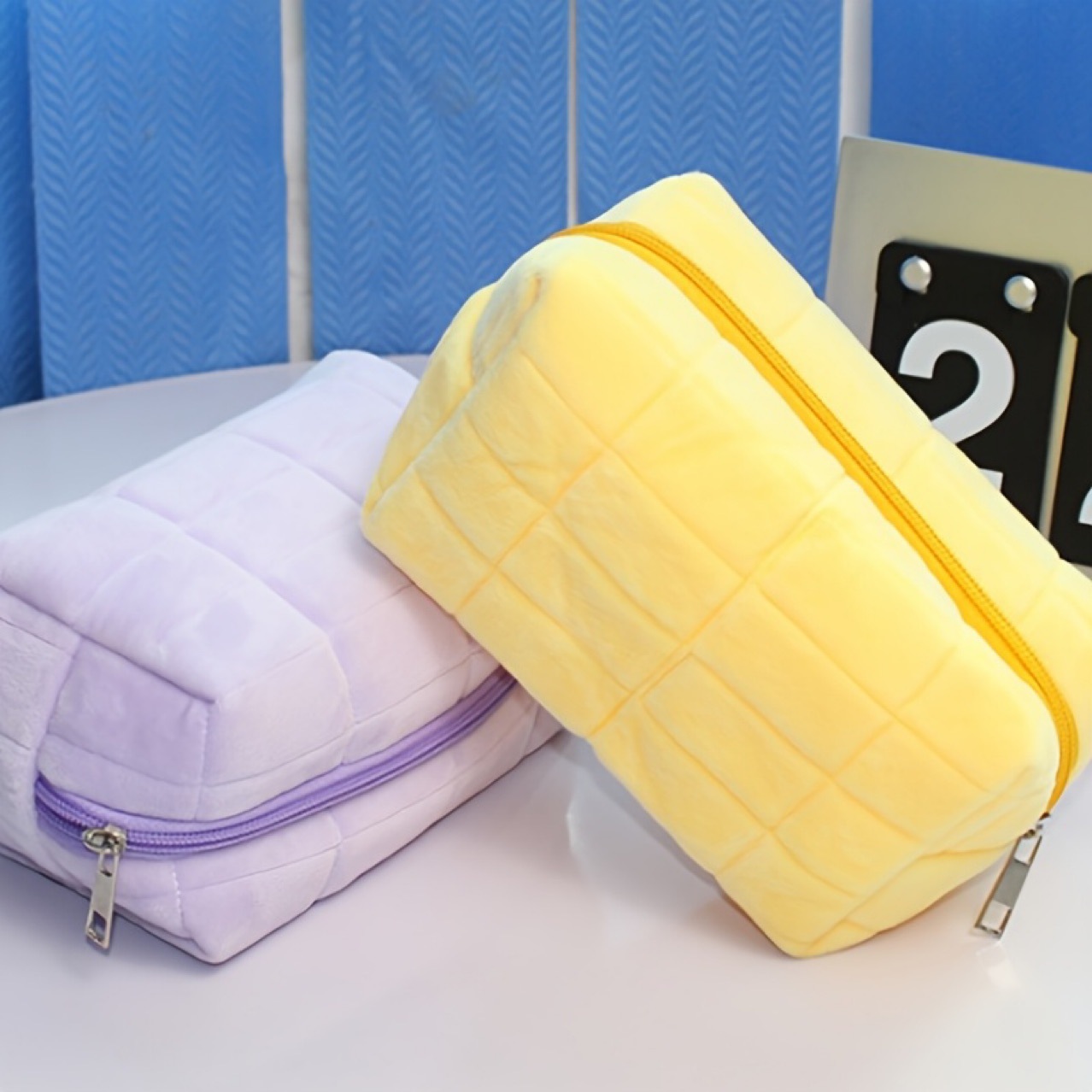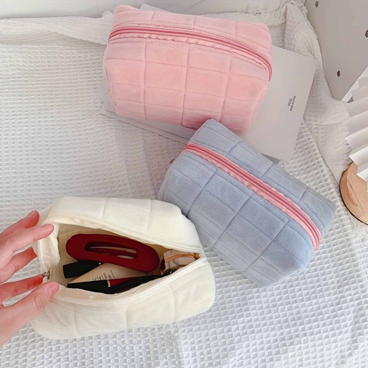 新款方格毛绒枕包枕头化妆包 ins日系高颜值女大容量收纳洗漱包包