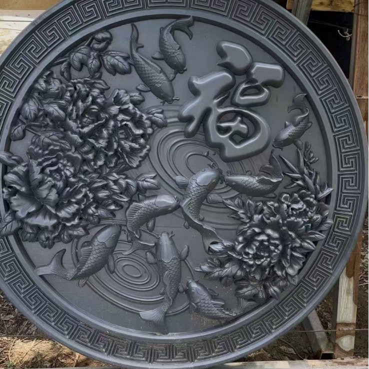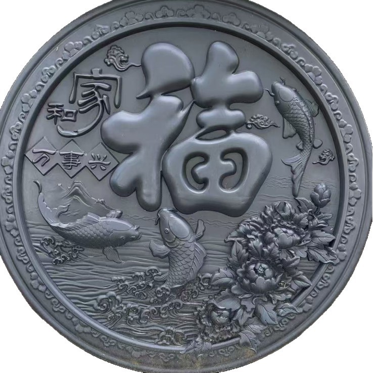 仿古圆形福字砖雕迎门墙中式庭院照壁墙影壁墙古建四合院外墙浮雕