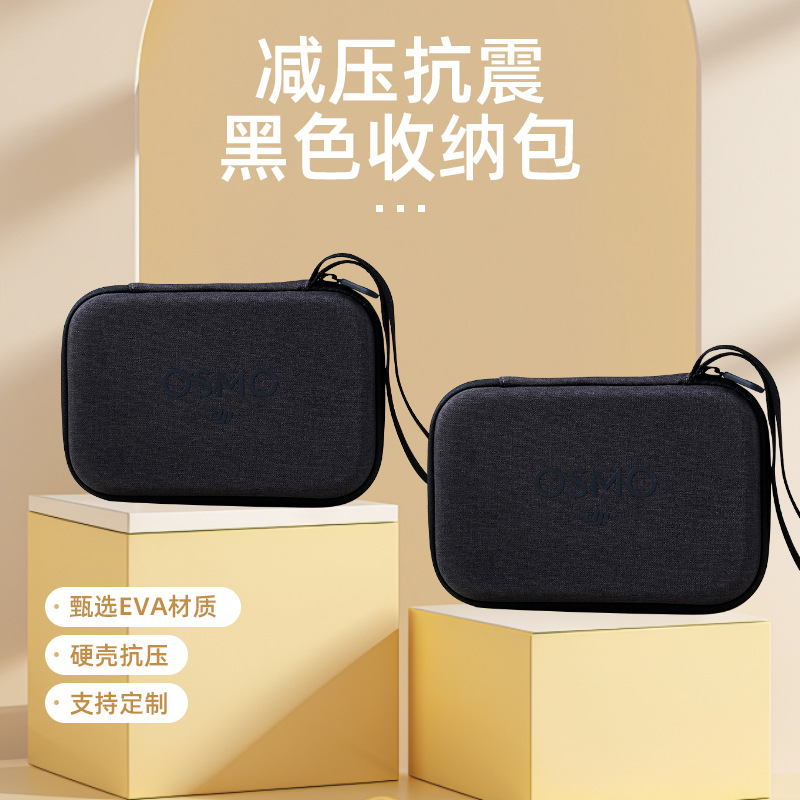 纯色方形黑色收纳包减压抗震手提挂件式工具包简约大容量收纳