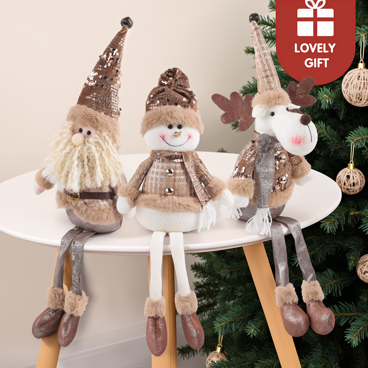 新款圣诞节装饰品圣诞老人雪人麋鹿创意摆件坐姿公仔圣诞礼物批发