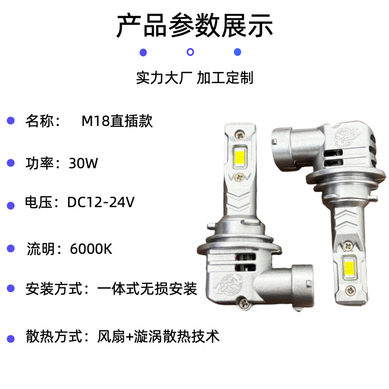 直插Led汽车摩托车前大灯改装车灯大功率M18专利产品航空铝材