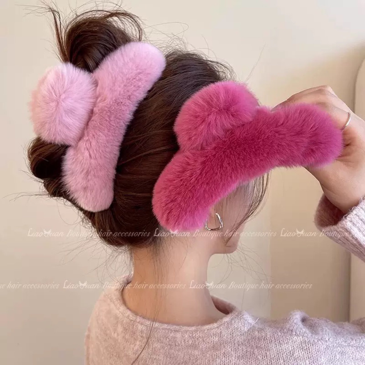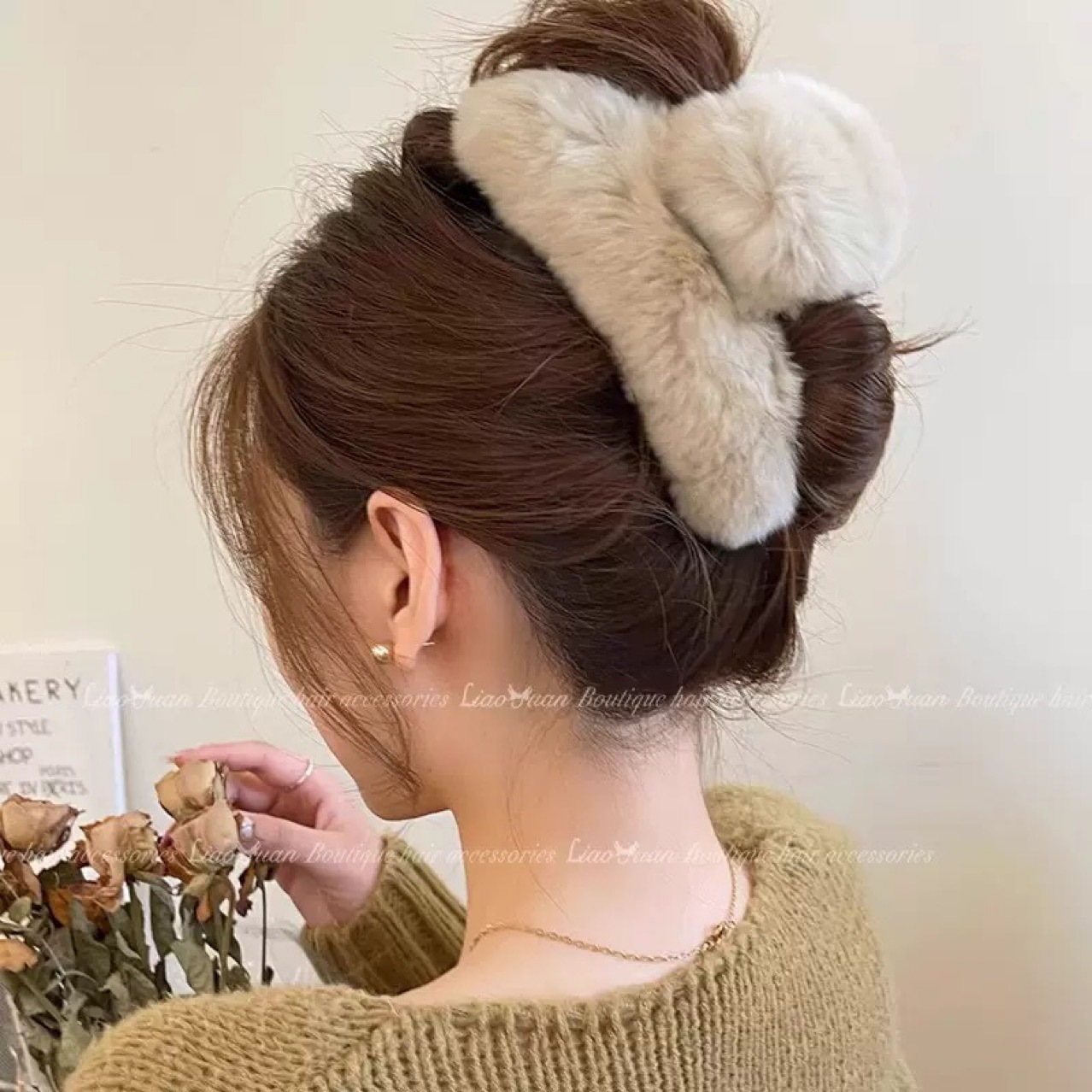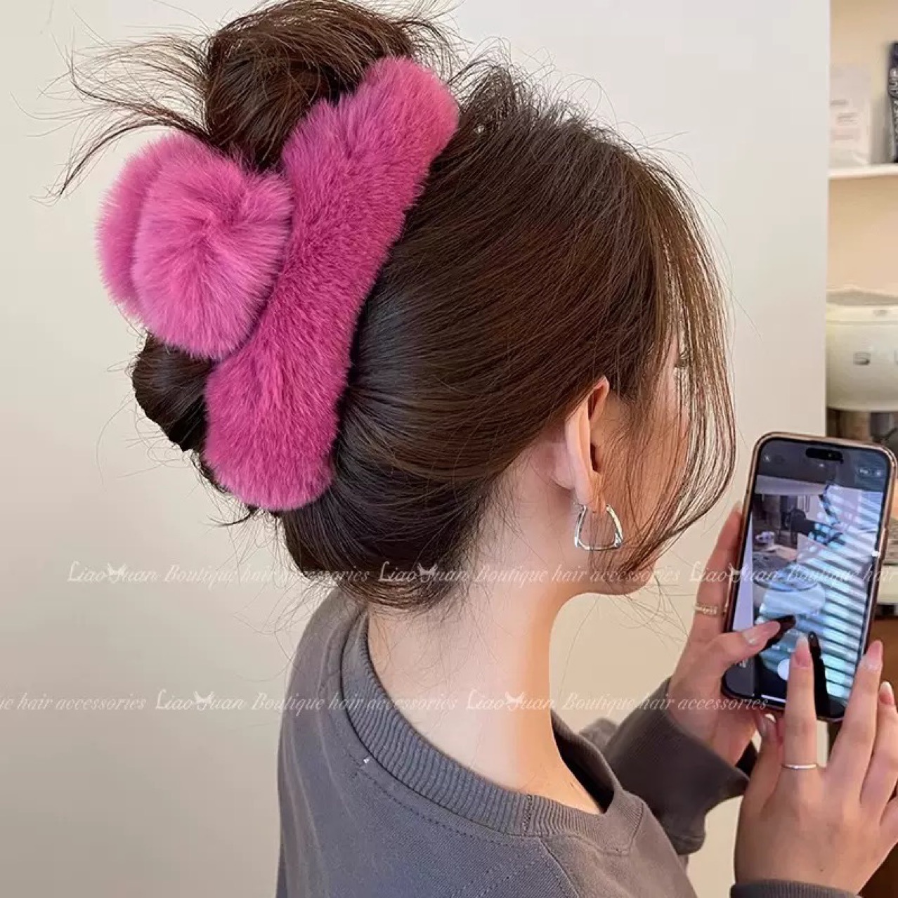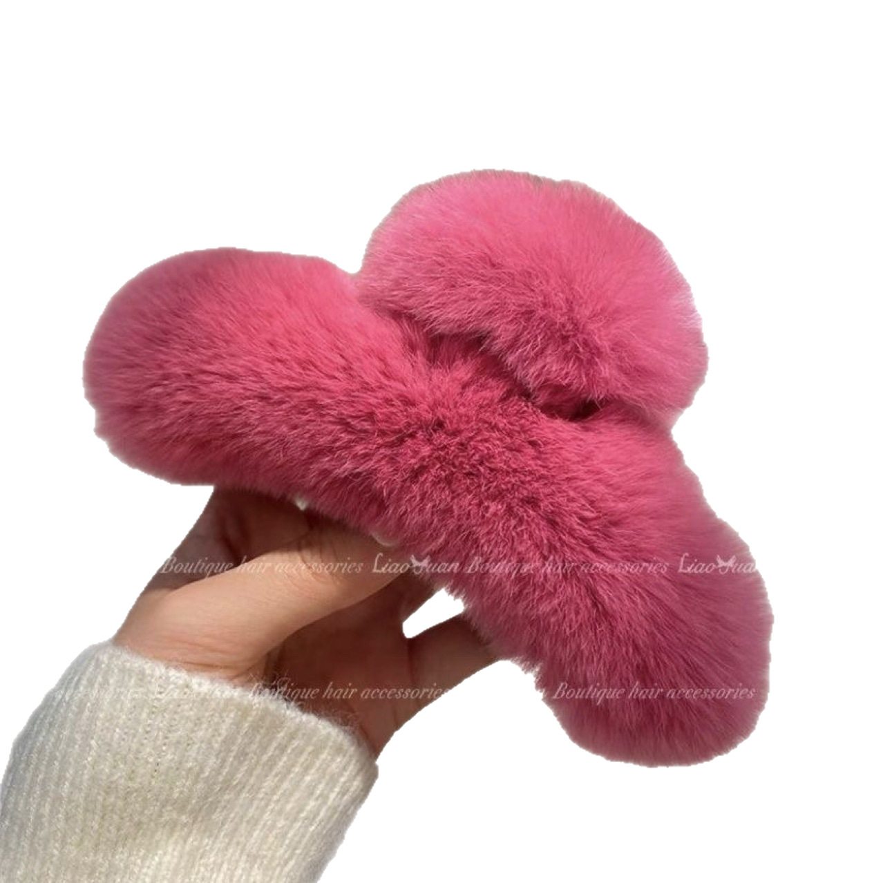 【超大号】真獭兔毛后脑勺抓夹网红超大毛毛发夹可爱毛绒头饰发抓
