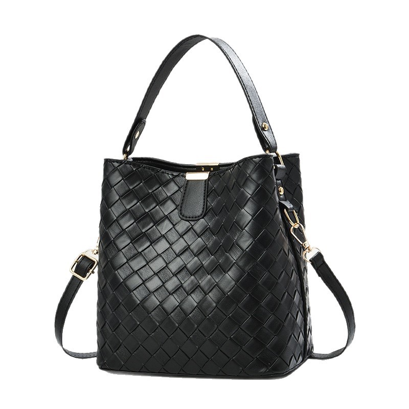 今年流行2025爆款质感编织休闲手拎水桶包大容量软皮单肩斜跨女包