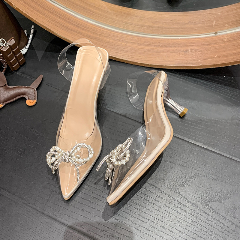 25新款高级感蝴蝶结气质凉鞋时尚鞋扣流苏小众珍珠饰品显瘦高跟鞋