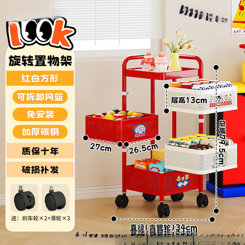 颜色推荐款【加厚方形款】四层红白*大容量+滑轮 *