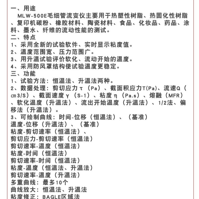 碳粉毛细管流变仪MLW-500E