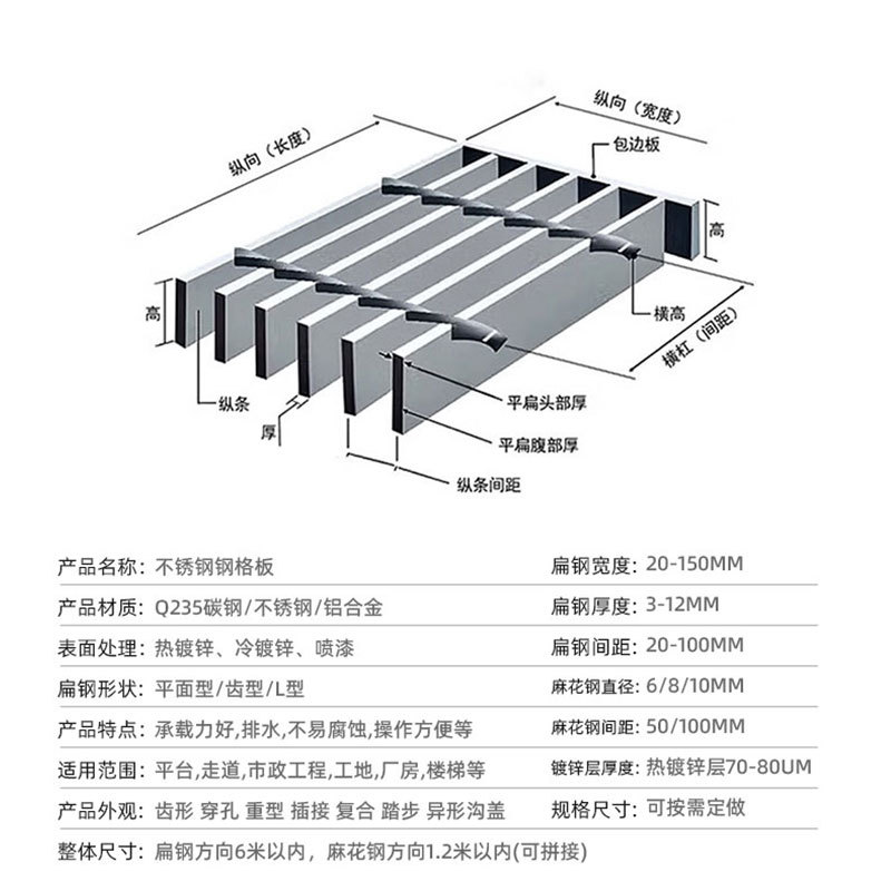 异形钢格板洗车行排水沟盖板雨水篦子楼梯踏步板热镀锌插接钢格栅