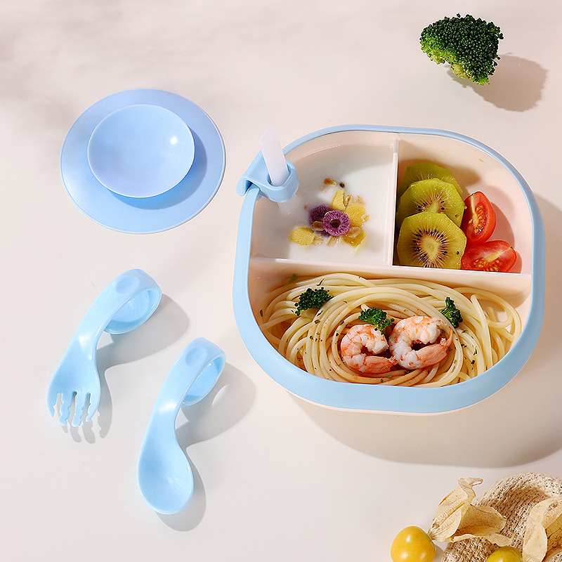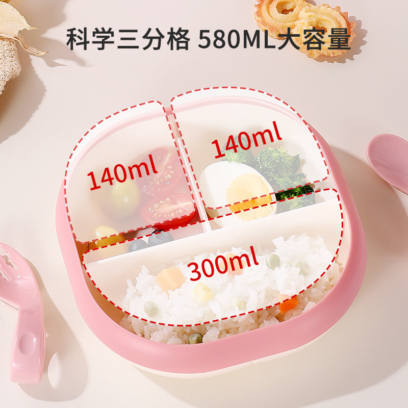 儿童防溢分格餐盘吸盘式可自主进食吃饭训练碗盘儿童辅食餐具套装
