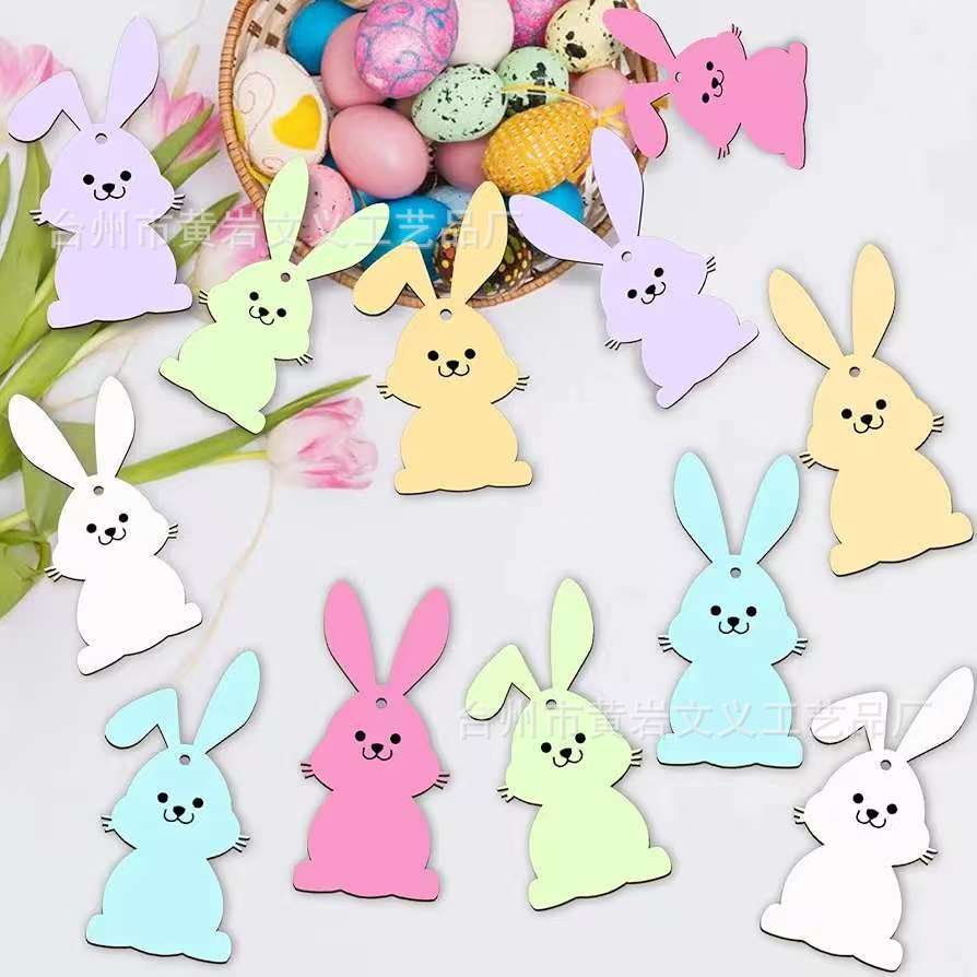 复活节卡通兔子饰品复活节装饰树挂牌带绳派对氛围家庭农舍田园