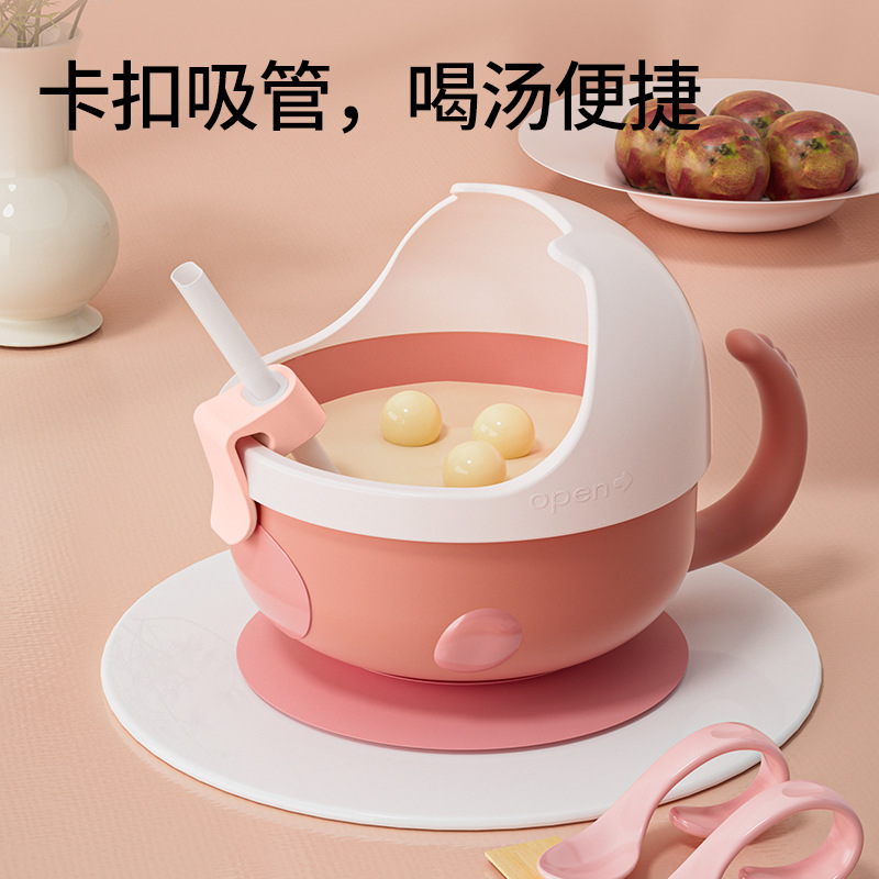颜色粉色套装【碗+吸盘+叉勺+吸管】