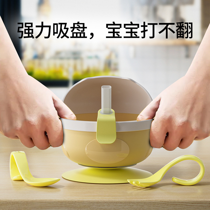 颜色黄色套装【碗+吸盘+叉勺+吸管】