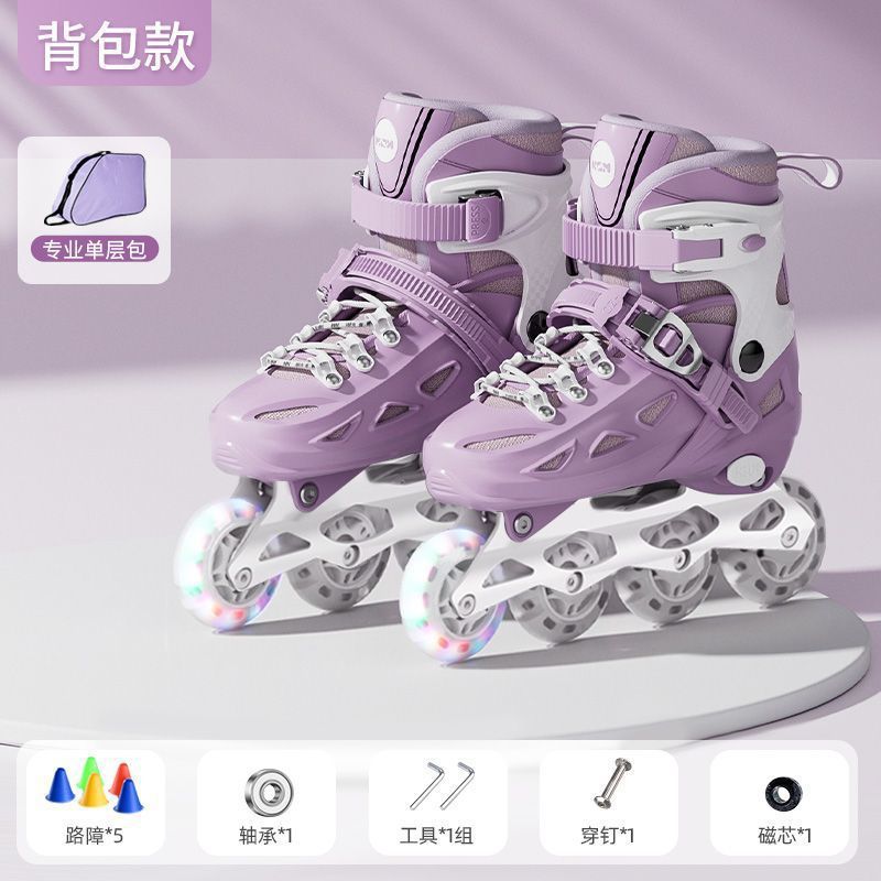 | 颜色 | 【双芭扣款+轮滑背包】紫全闪 | 颜色 | 【双芭扣款更牢固】紫全闪+背包+头盔护具 |