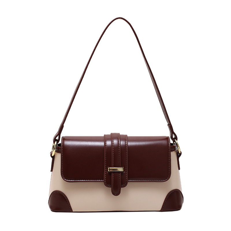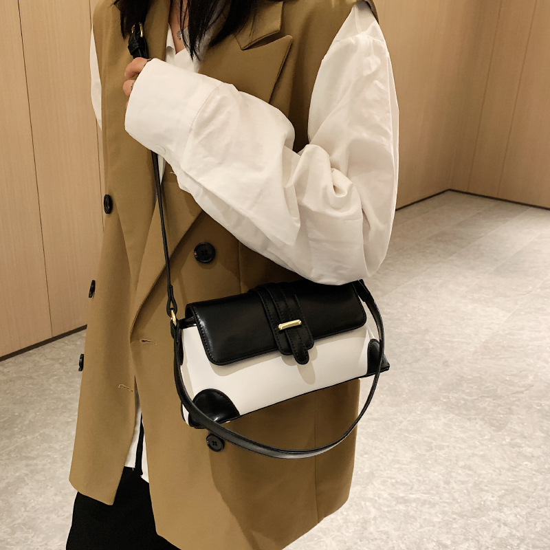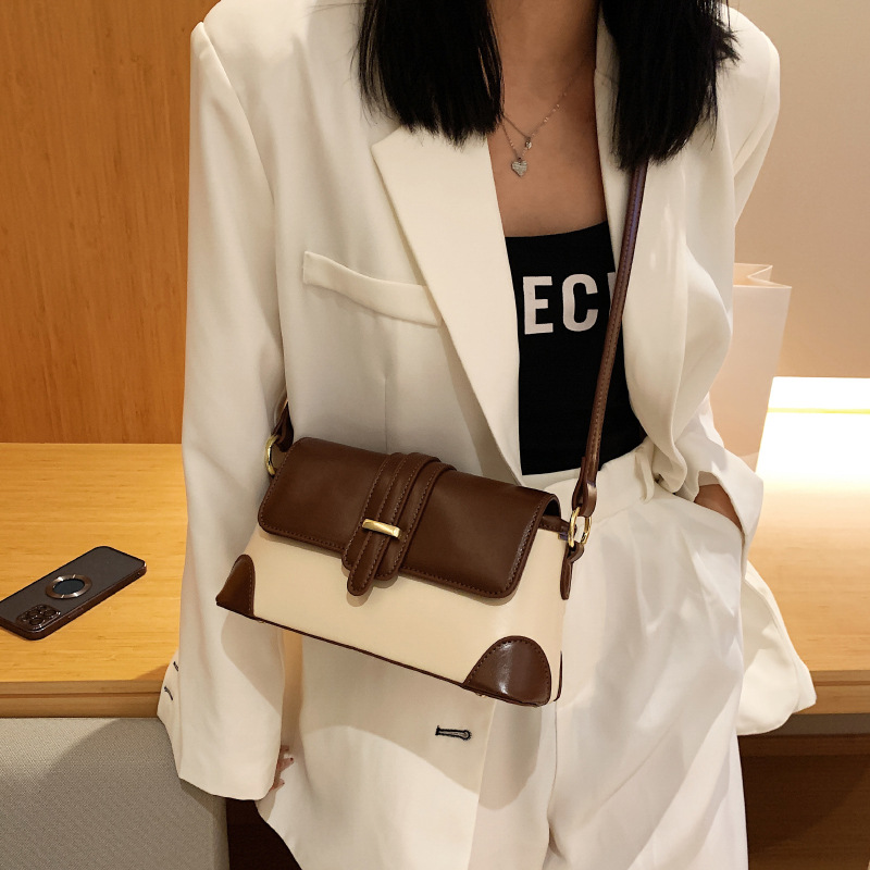 小众设计新款气质百搭单肩包拼接复古腋下包包通勤包拼色时尚法式