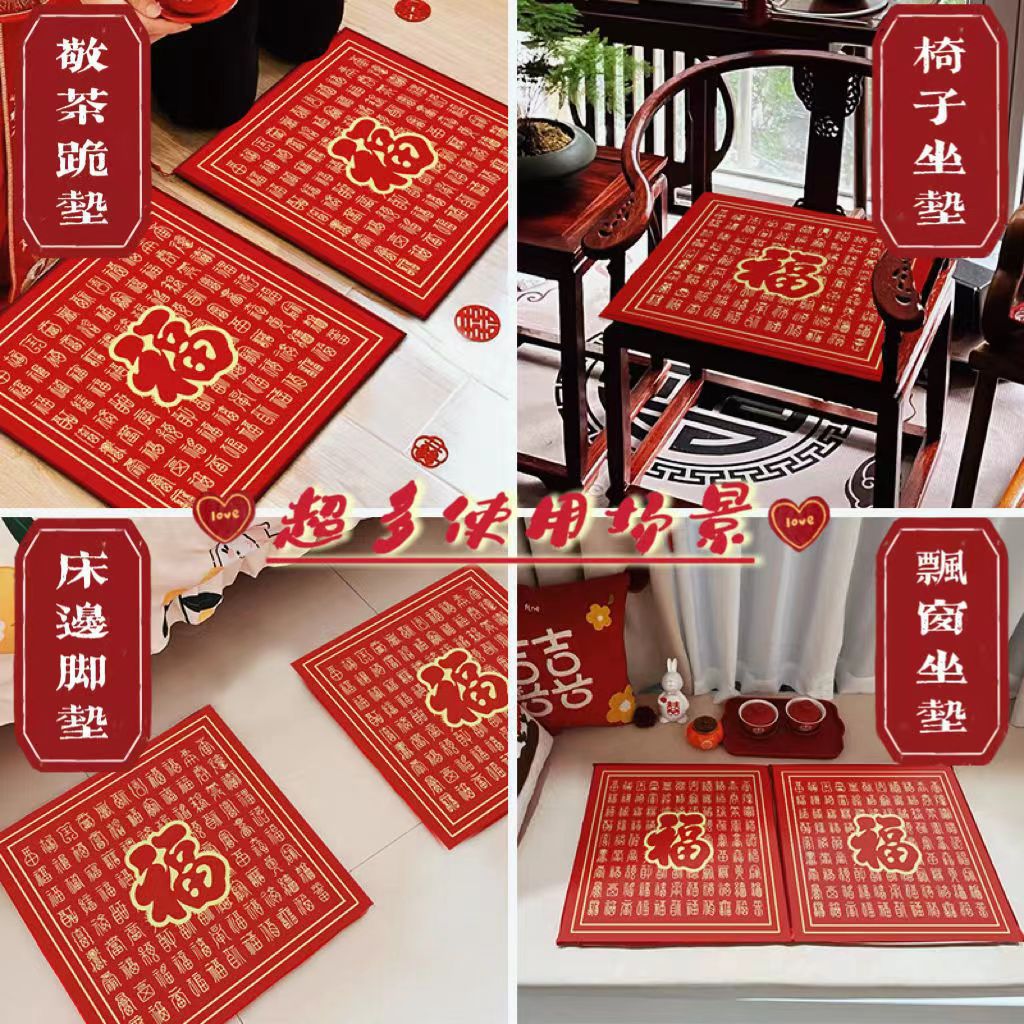 | 颜色 | 窗花福字【坐福垫】50乘50厘米【单人坐垫/跪垫】 | 颜色 | 窗花福字【坐福垫】30乘30厘米【小垫子】 |