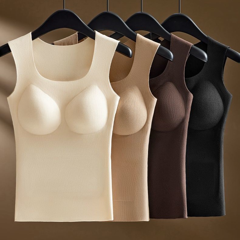 羊绒蚕丝保暖背心内衣女带胸垫一体加绒加厚防寒打底上衣秋冬吊带