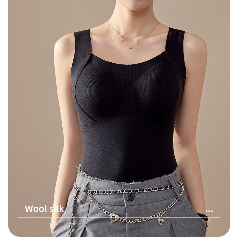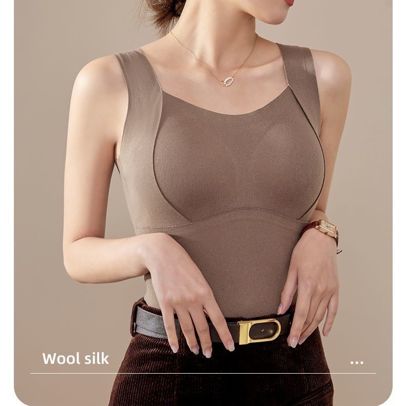 爆款羊毛桑蚕丝徳绒加绒加厚保暖背心女士防寒打底内衣带胸垫一体