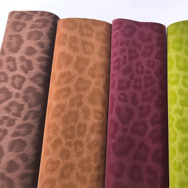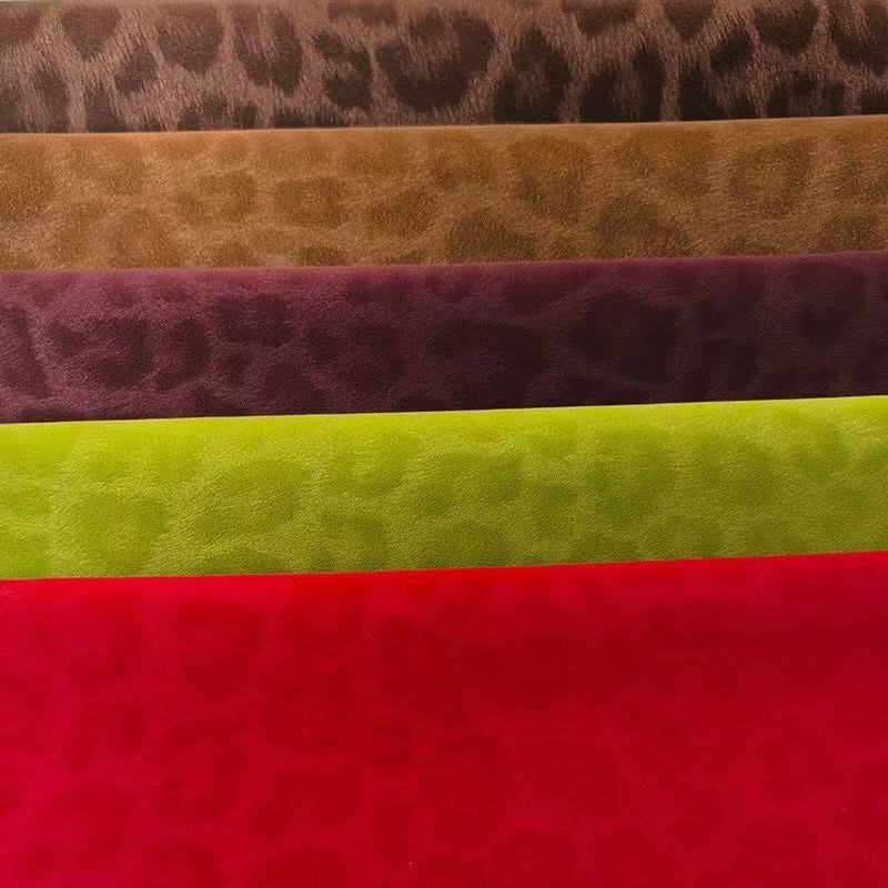 豹纹绒感pu皮革0.8mm人造革柔软耐刮箱包手袋包装革磨砂面料