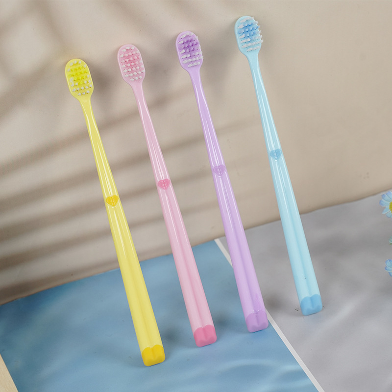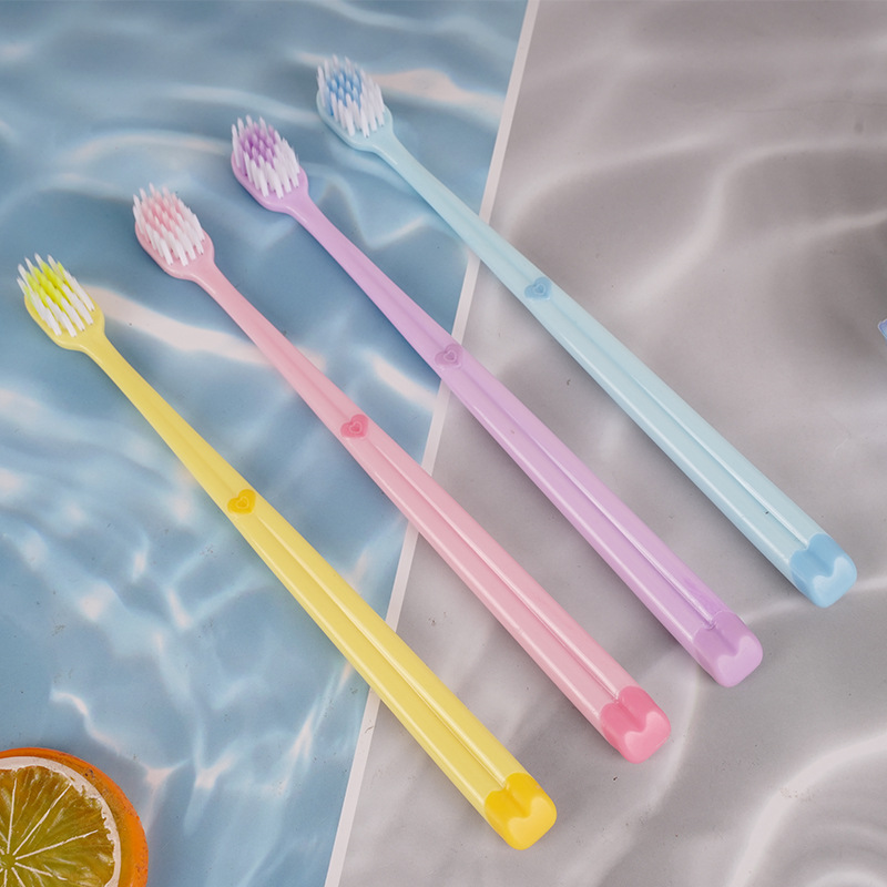 超市批发单支装牙刷家用待客成人软毛独立包装马卡龙色爱心款牙刷