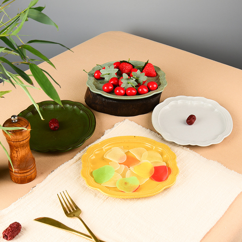 彩色点心盘陶瓷菜盘子商用凉菜盘西餐盘平浅圆盘牛排盘子水果碟子