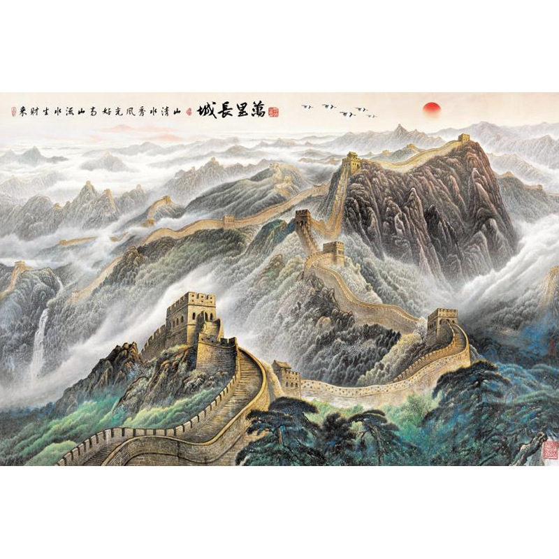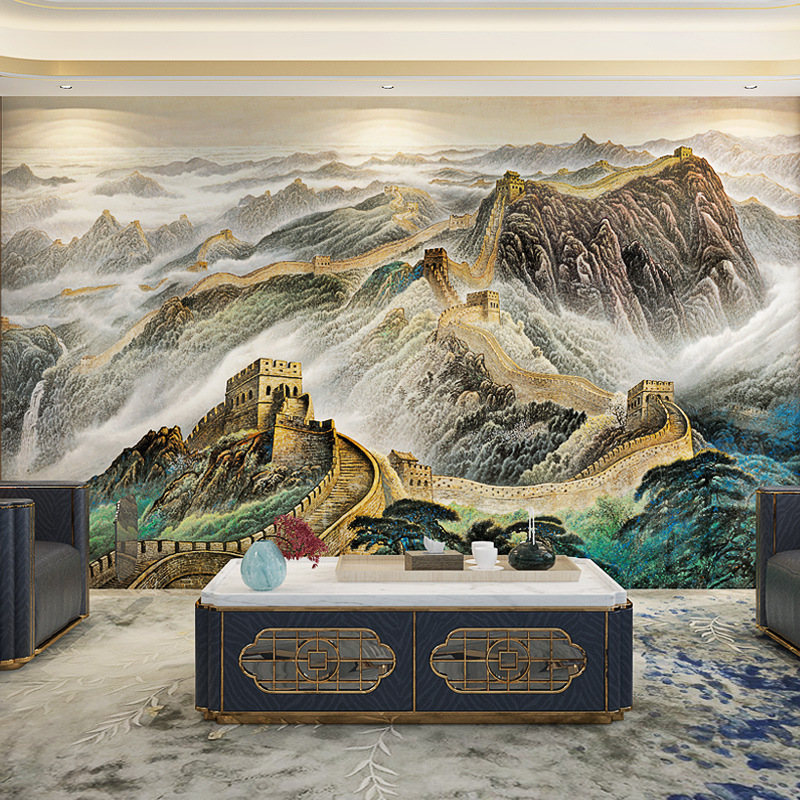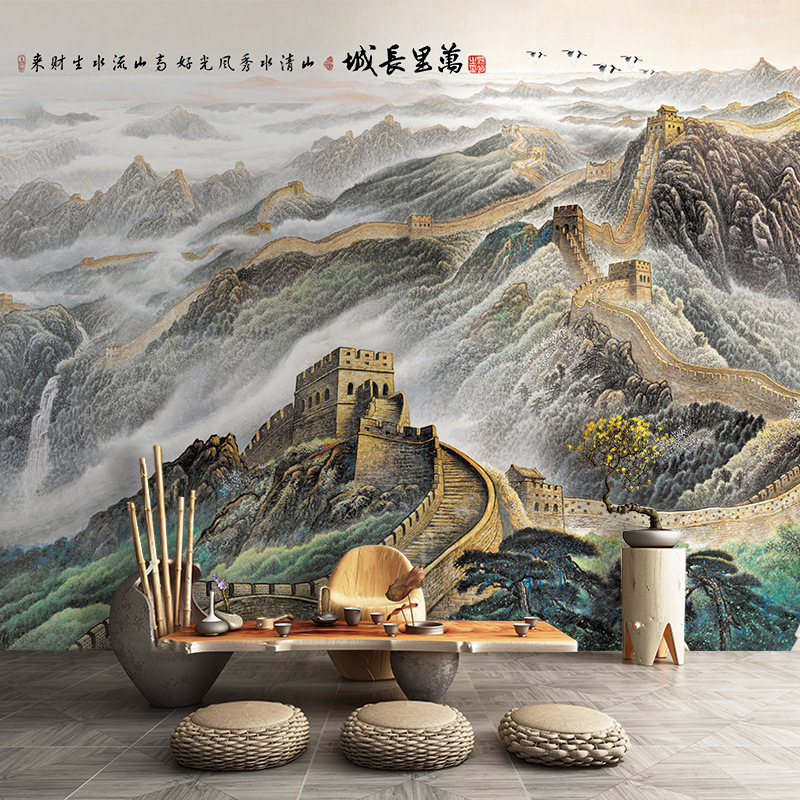万里长城墙布壁画中式客厅壁纸老板办公室招财背景墙酒店大堂墙纸