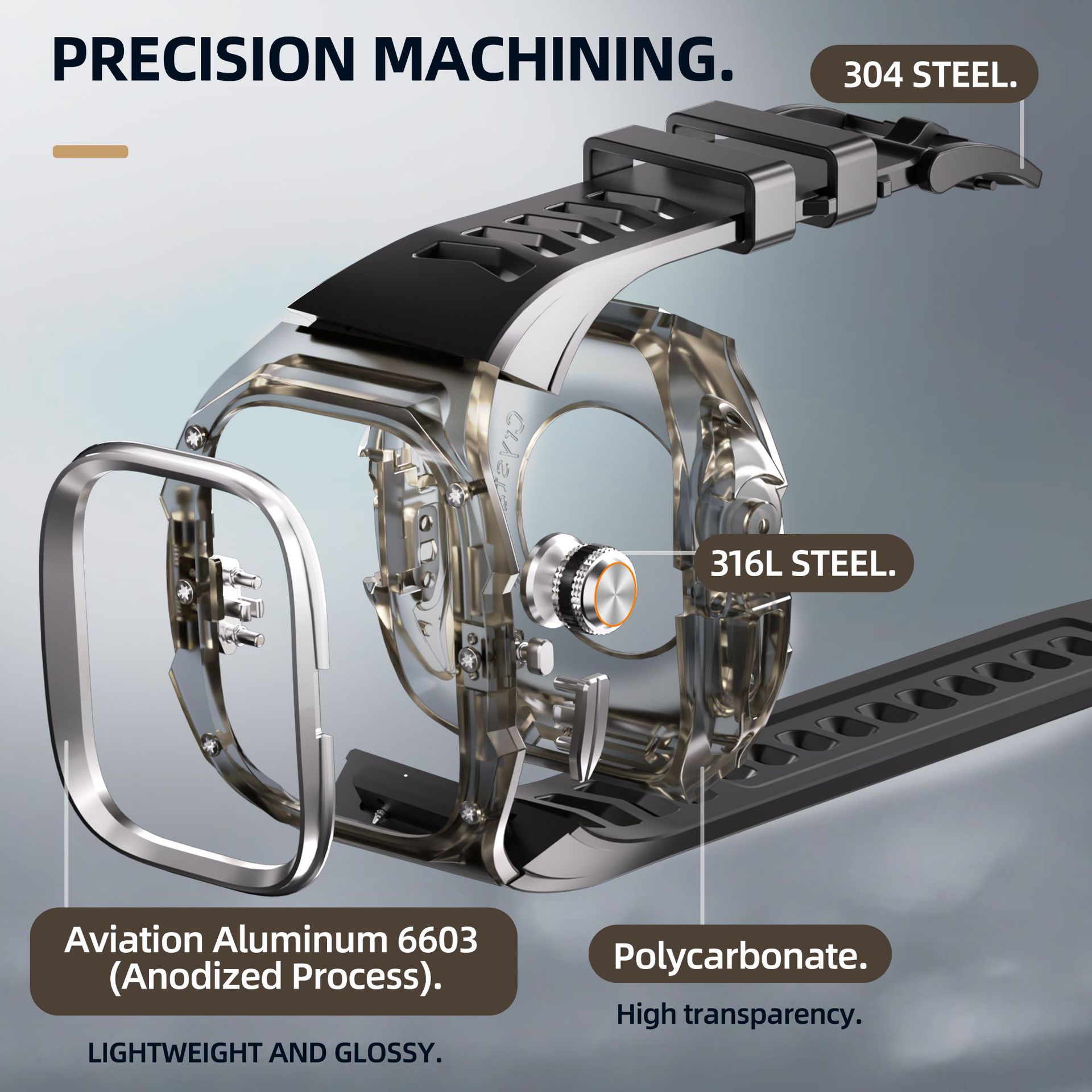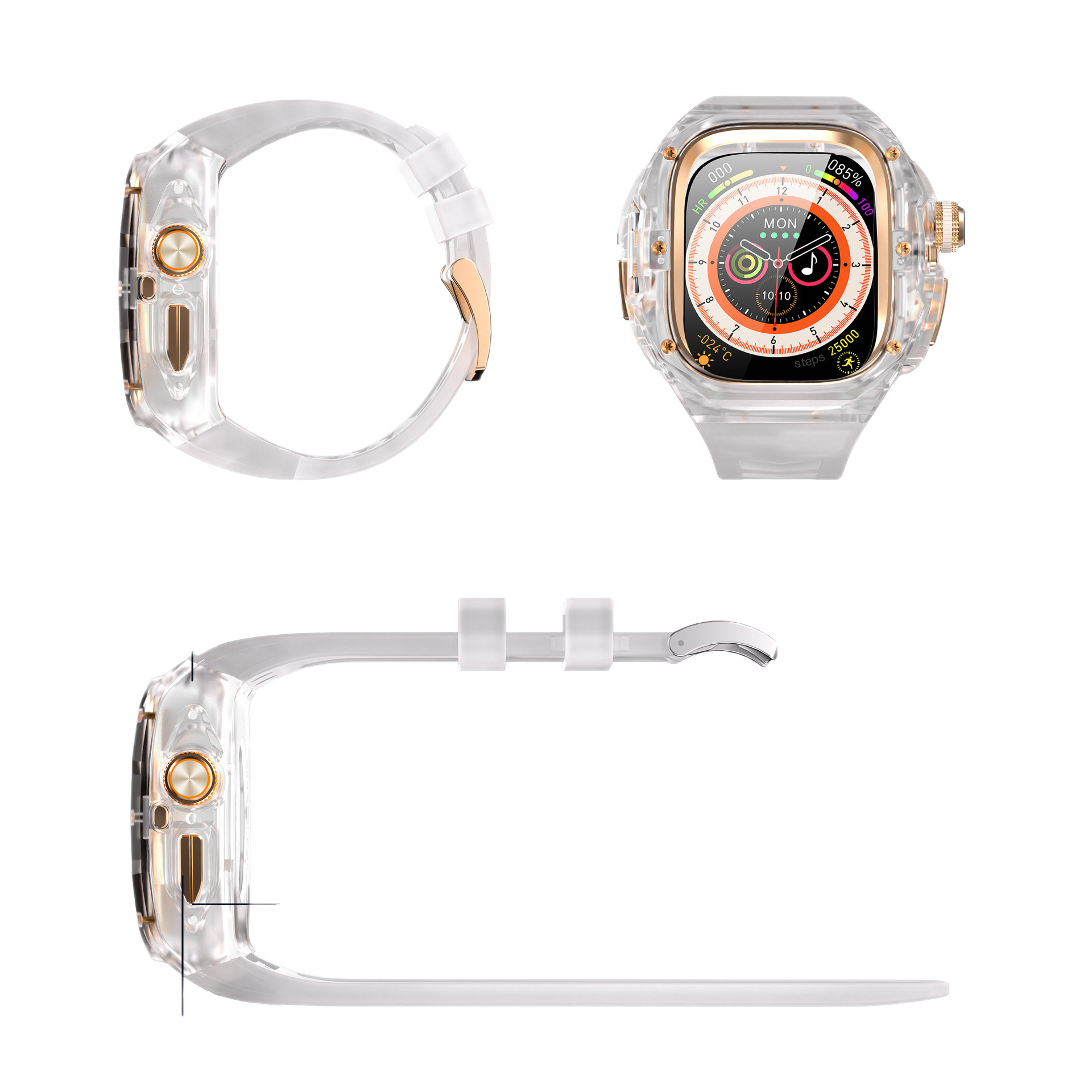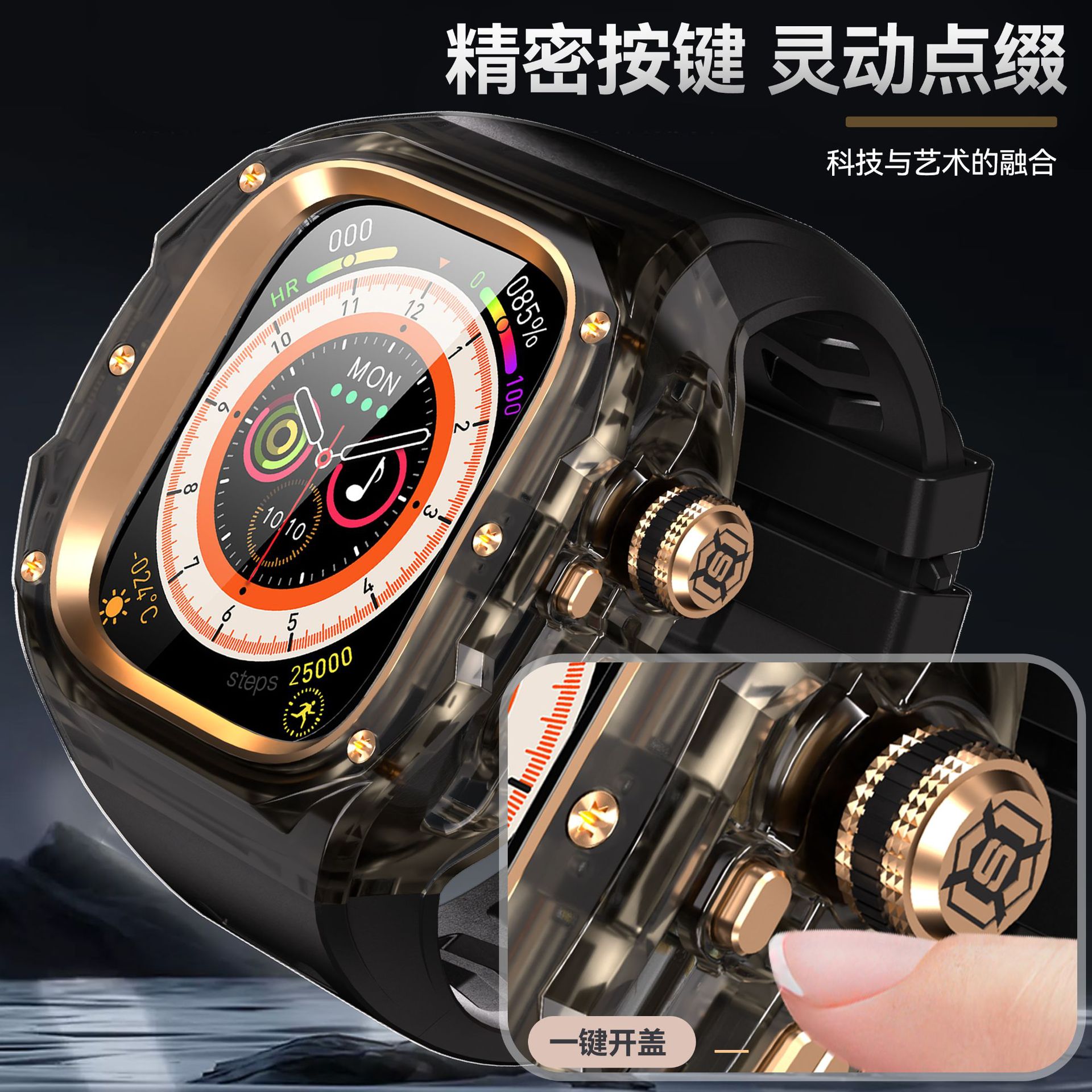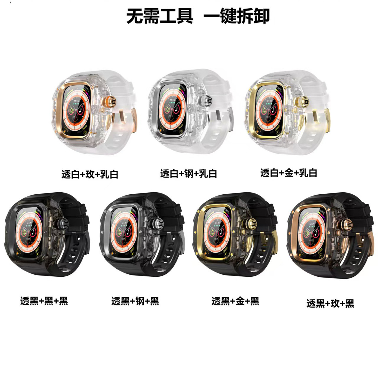 适用苹果iwatch Ultra表带一键开盖防摔壳一体表带水晶款改装49mm