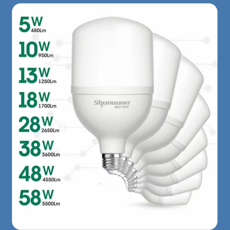 顺冠LED螺口e27节能灯泡家用厂房工厂高亮大功率灯具照明球泡