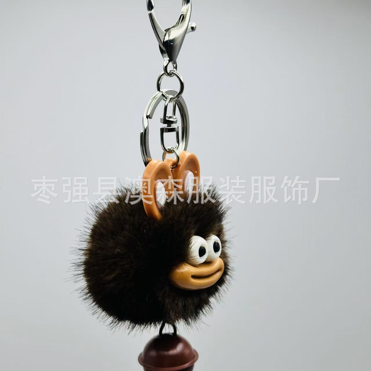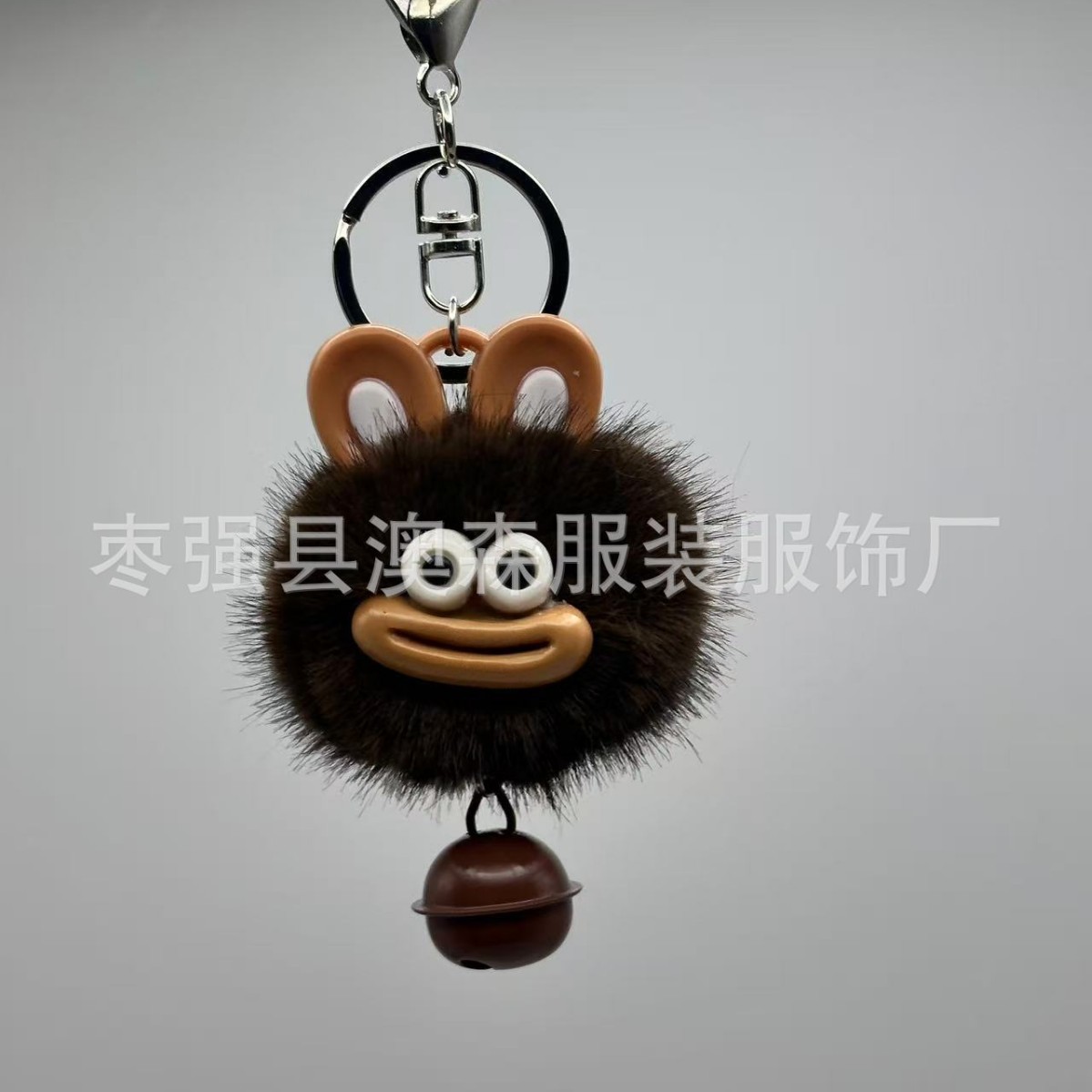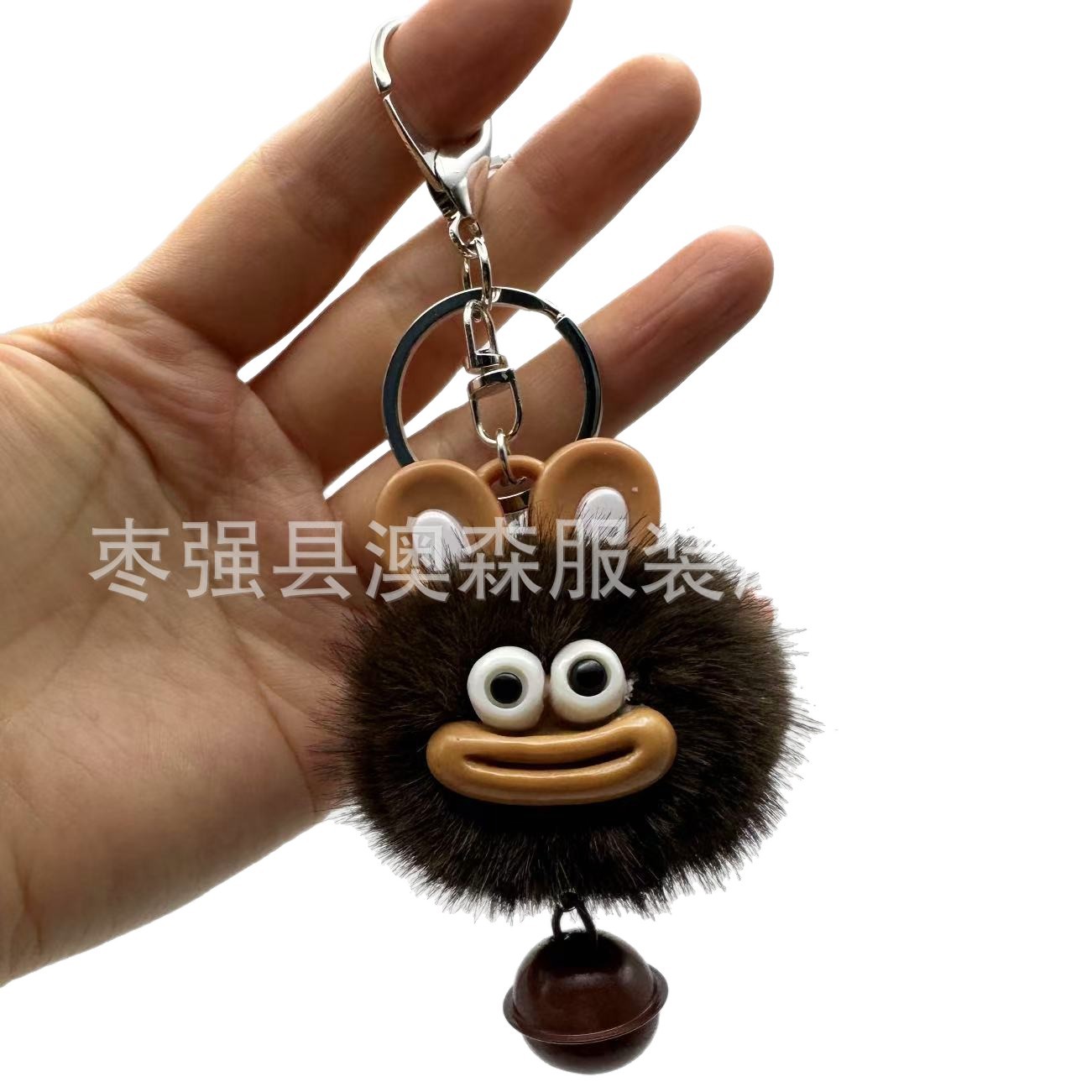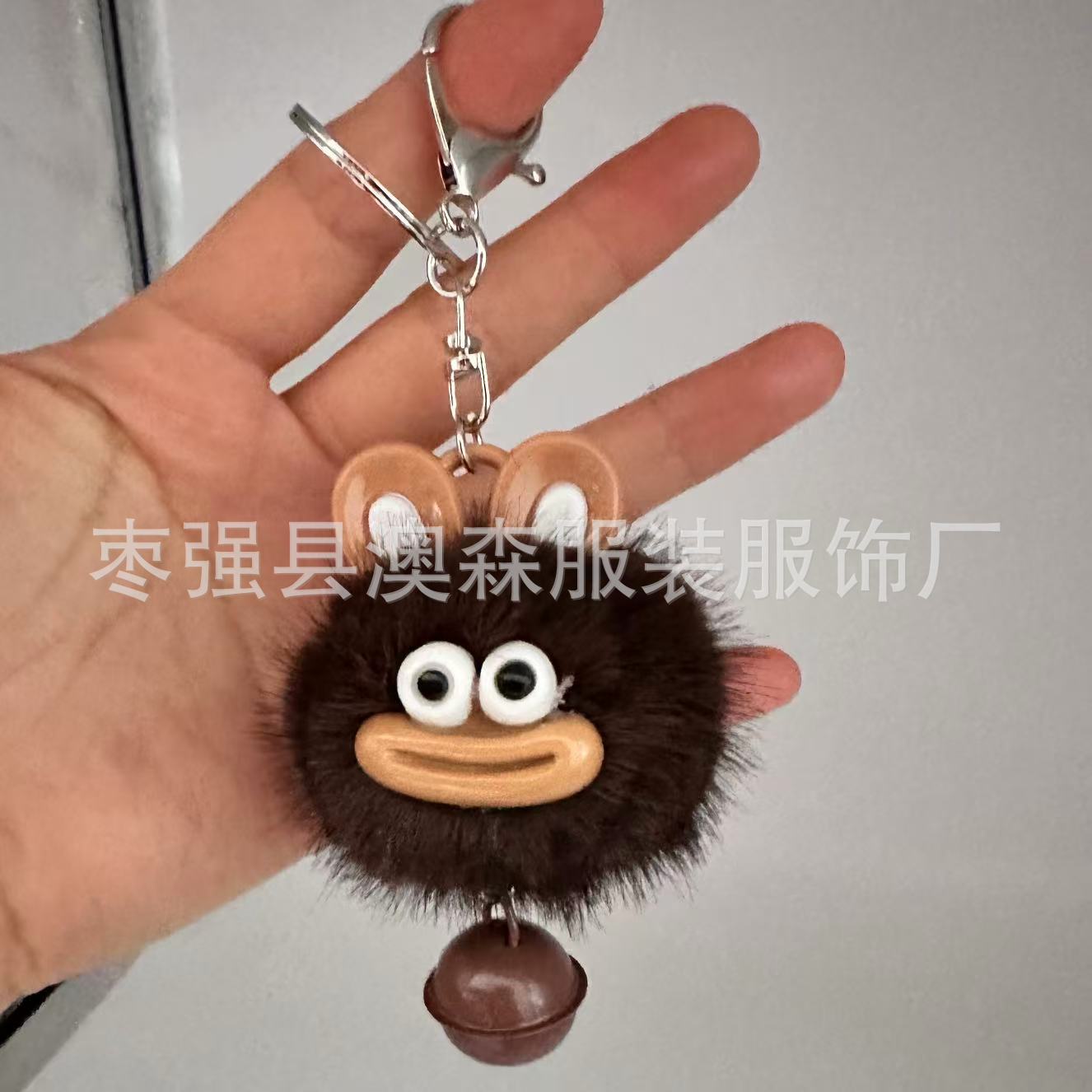 可爱仿獭兔毛绒大嘴巴小煤球带铃铛汽车钥匙扣挂件毛绒球公仔玩偶