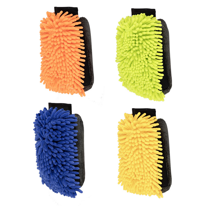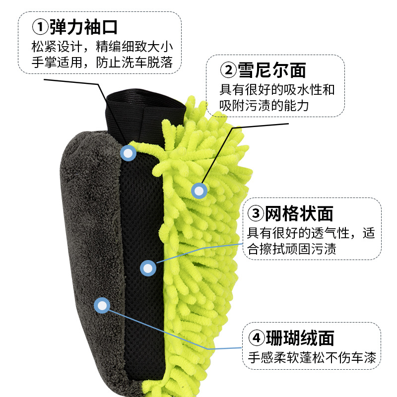 适用洗车手套雪尼尔珊瑚毛绒加厚双面擦车抹布泡沫清洁工加厚耐用