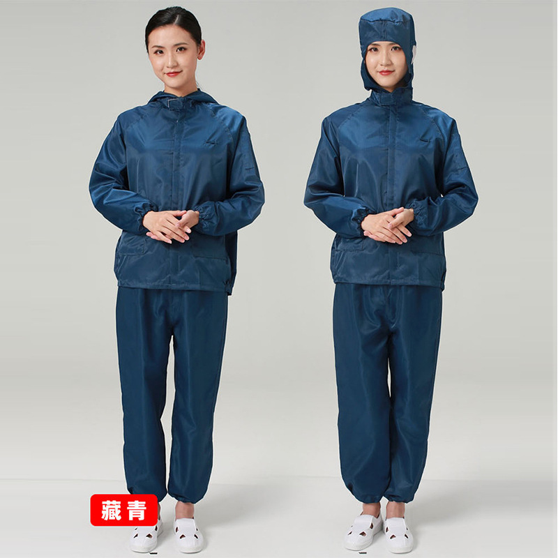喷漆防护岩棉防尘防静电连帽分体服食品车间男女白蓝灰藏青耐脏