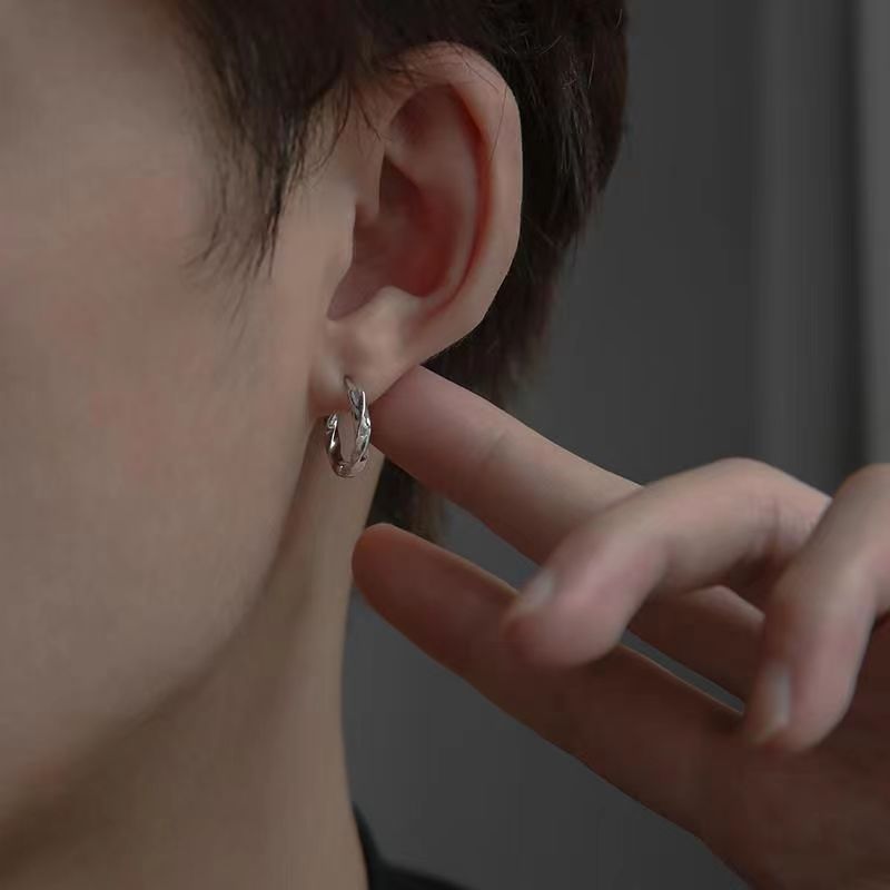 小额批发不锈钢方扭纹耳环小众男士耳钉潮流个性简约显脸小女饰品