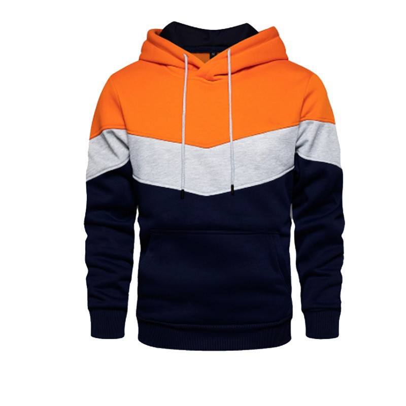 亚马逊秋冬拼色连帽衫卫衣宽松套头男士卫衣