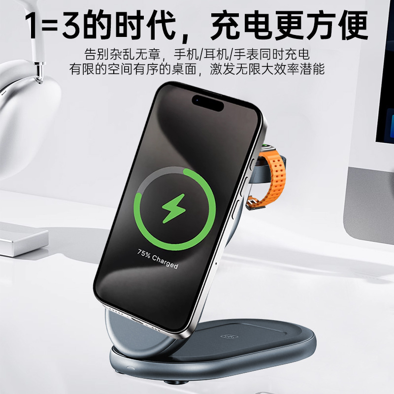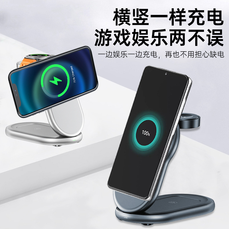 新款折叠磁吸三合一无线充同时兼容手表15W快充充电支架充电器