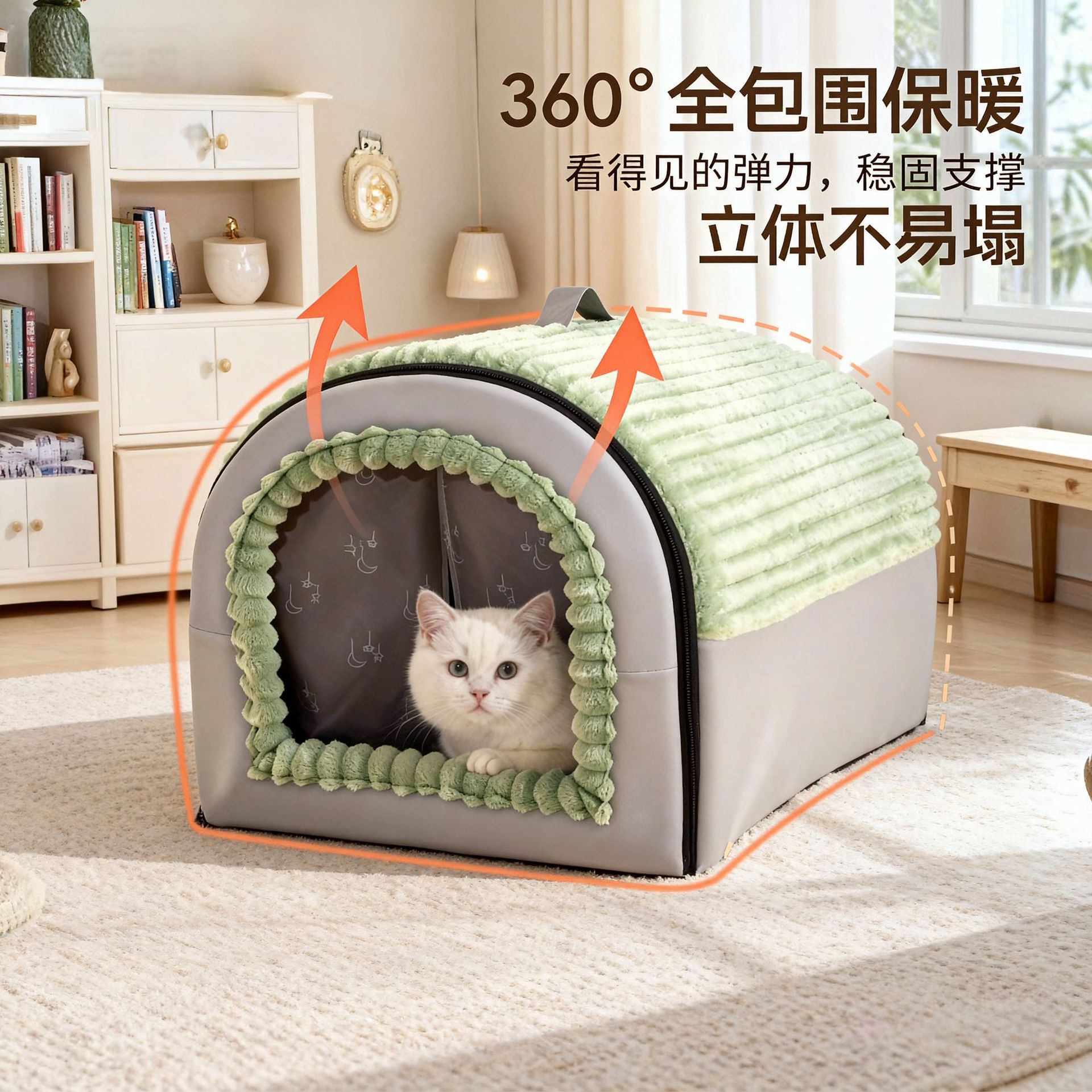 2025冬季舒适保暖猫窝睡觉小房子可拆洗PP棉敞篷安全感猫猫宠物窝