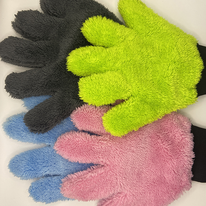 超细纤维洗车手套汽车美容双面五指洗车手套加厚毛绒刷车打泡清洁