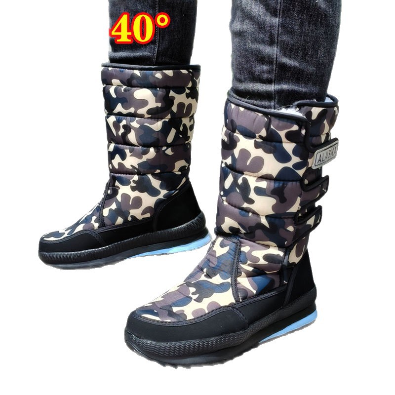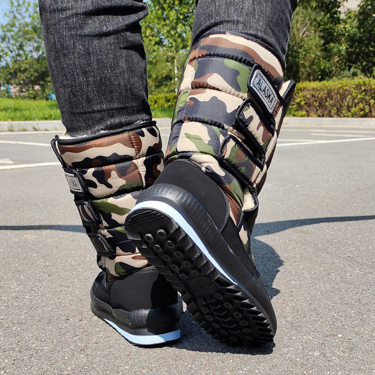 冬季加厚男雪地靴中筒保暖男士棉靴子新款防滑加绒棉鞋迷彩户外靴