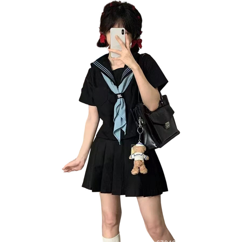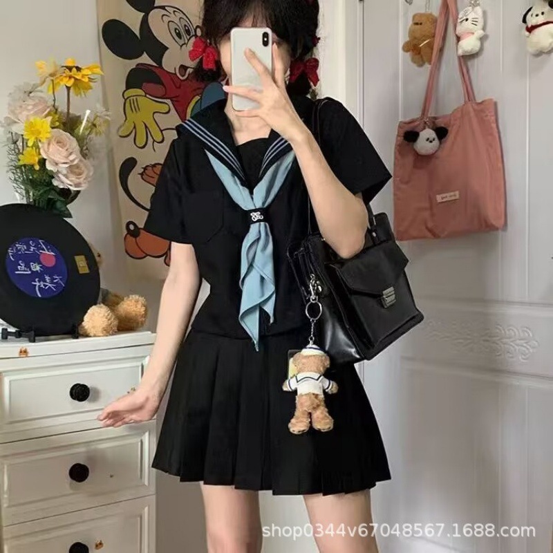 颜色海蓝三本短袖+短裙(送领结+赠品)
