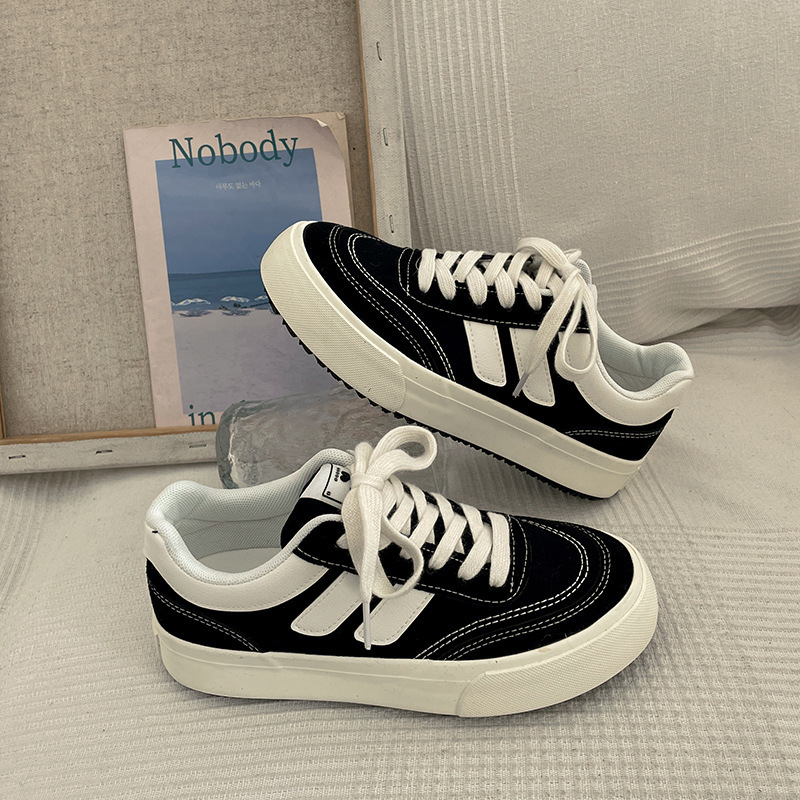 超火黑色厚底帆布鞋女春秋百搭小白鞋板鞋2025新款小众休闲运批发