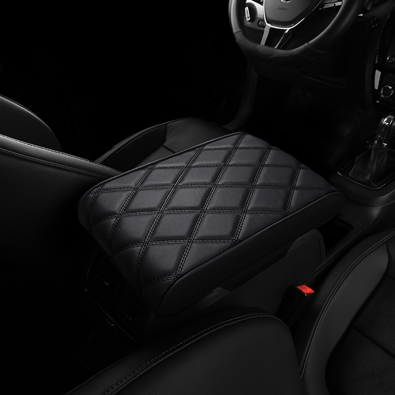 跨境BJ菱形菱格纳帕皮汽车扶手箱垫记忆棉批发中央手扶箱增高垫套