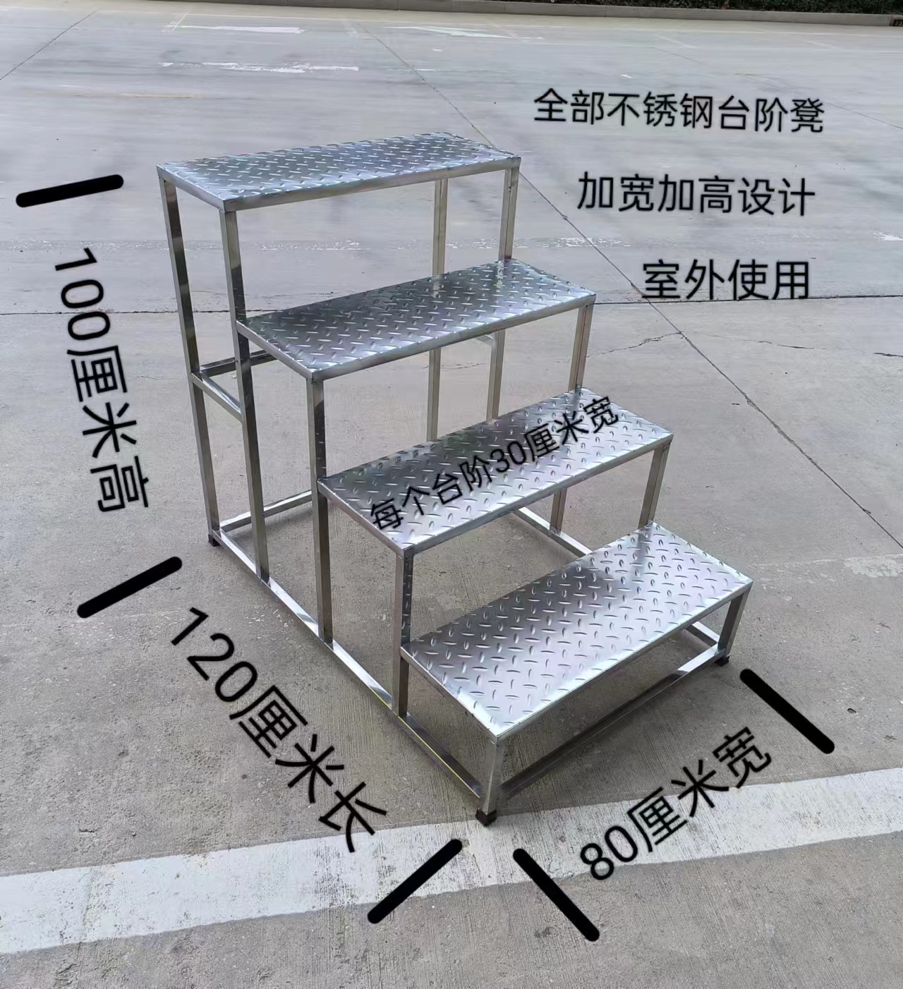 踏板数 | 不锈钢台阶凳4层80*120*100厘米 | | 踏板数 | 不锈钢台阶凳3层加宽加高扶手80*90*75+100厘米 |