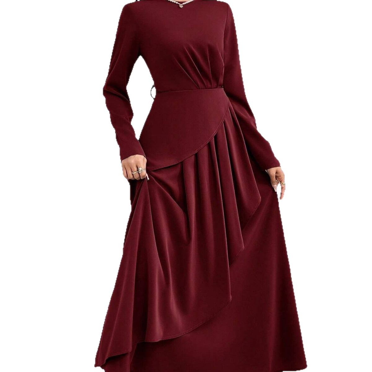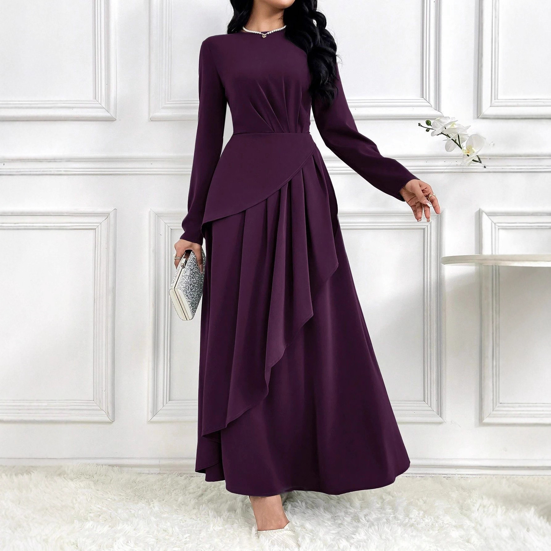 亚马逊欧美2025春季季新款设计感华贵时尚长袖长裙气质优雅连衣裙