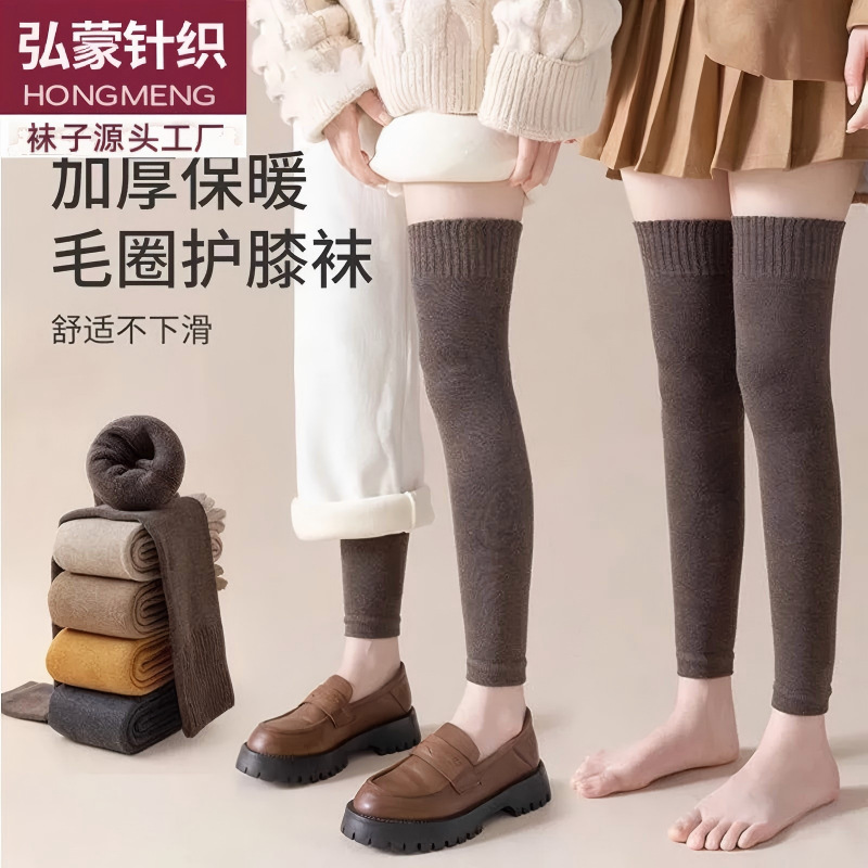 毛圈护膝长筒袜过膝袜子女加厚保暖毛圈袜秋冬护膝盖毛巾加绒大腿高筒袜
