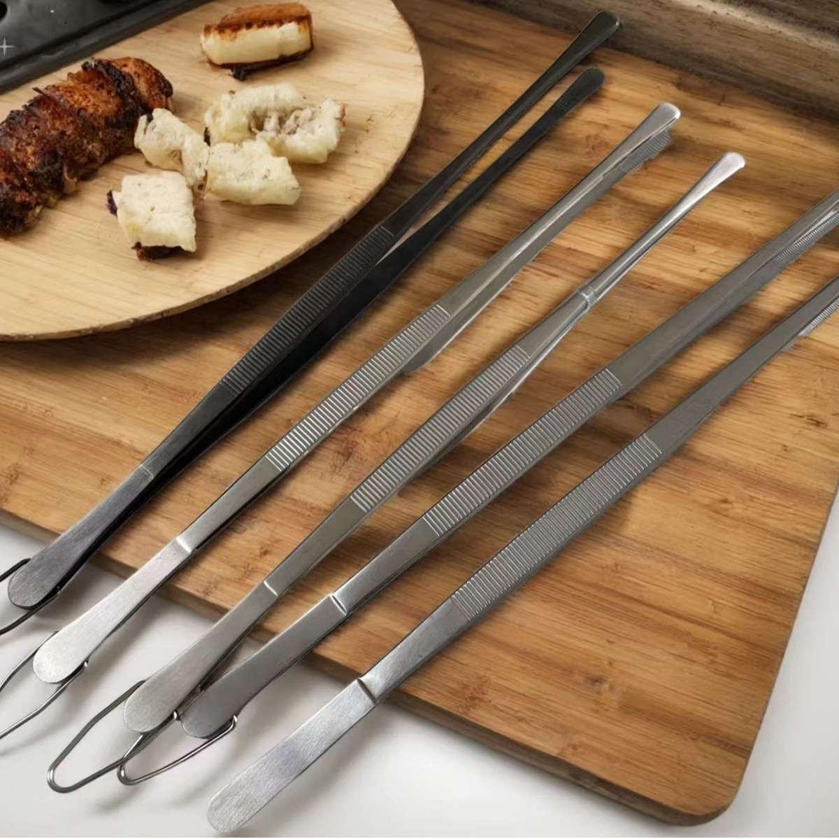 不锈钢韩式烧烤夹日式BBQ烤肉镊子12英寸料理食物夹长夹子直销