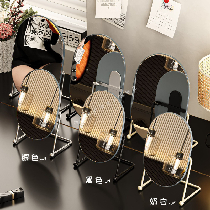 化妆镜子台式梳妆镜子公主镜便携高级大号网红简约随身宿舍桌面女