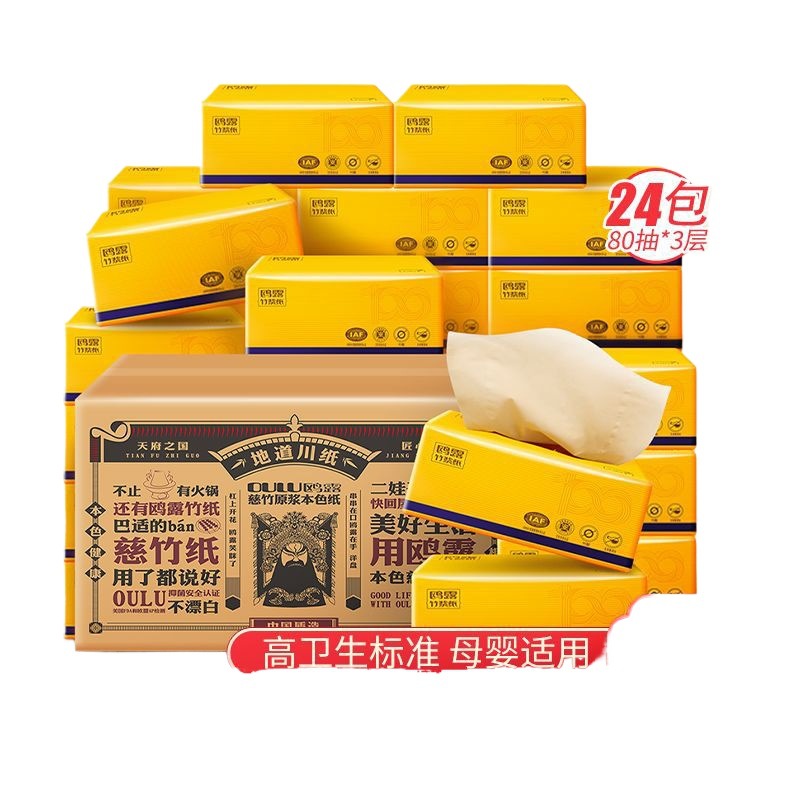 鸥露本色抽纸竹浆餐巾纸卫生纸欧露面巾擦手纸整箱家用实惠装24包