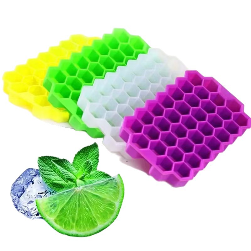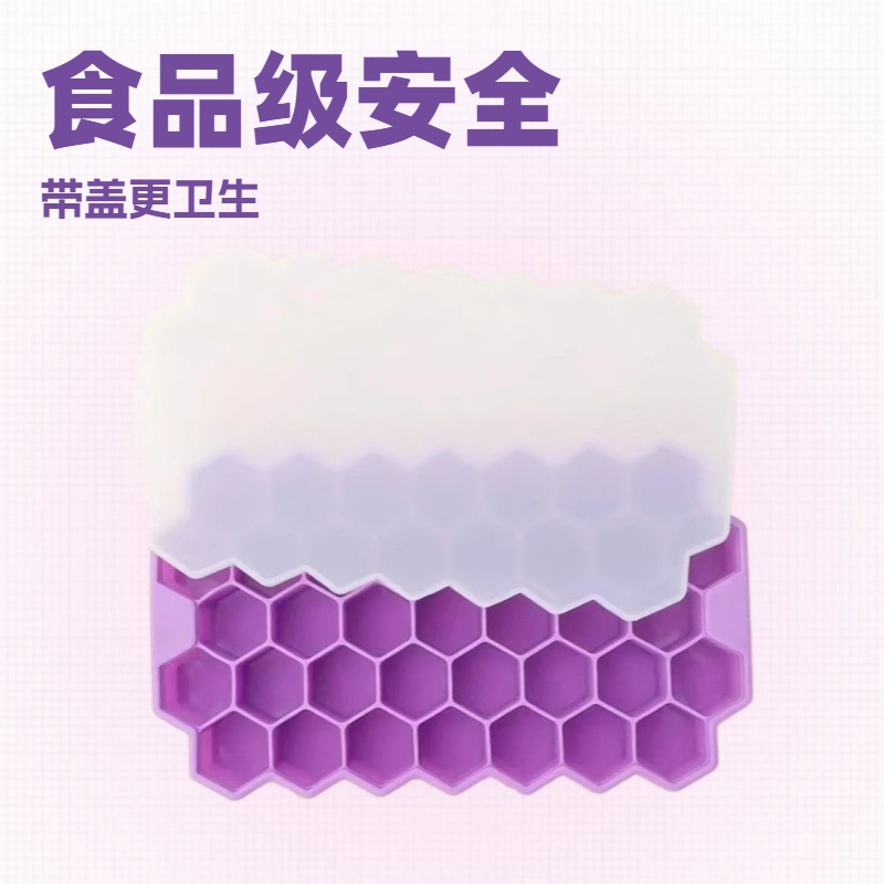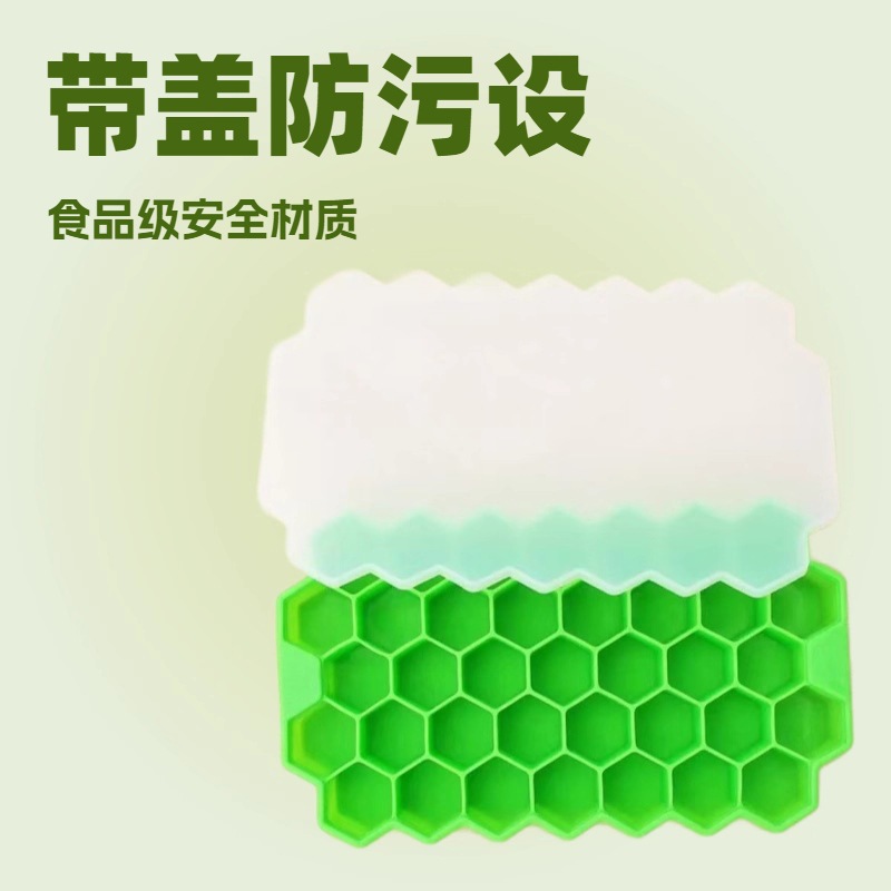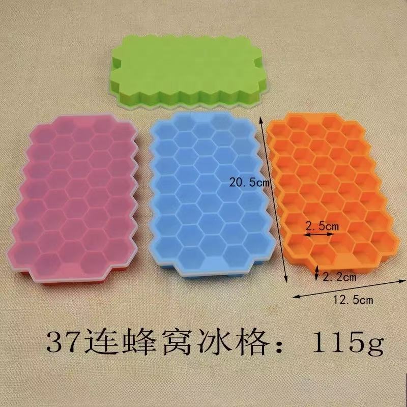 现货37连带盖蜂巢冰格食品级硅胶模具 家用diy制冰冰盒 鸡尾酒啤