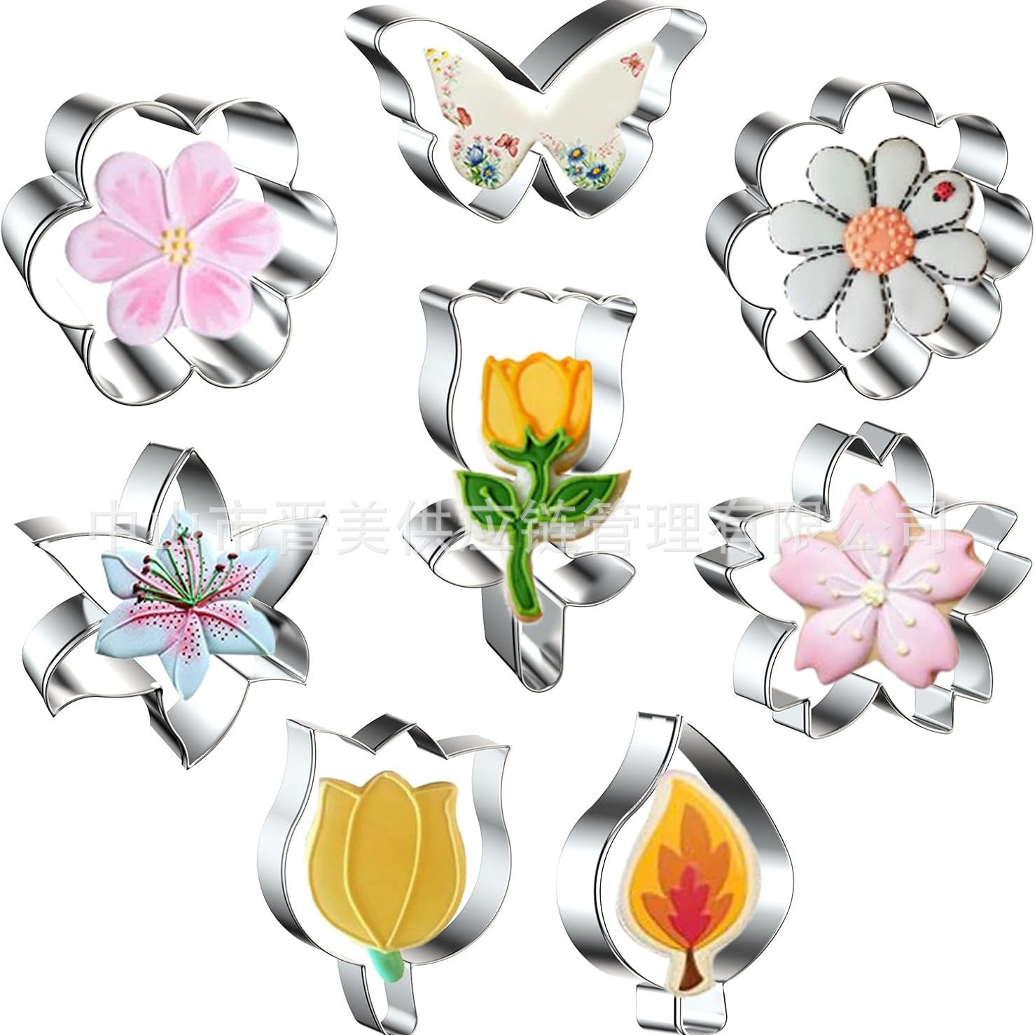 8件水仙花套装不锈钢饼干模具母亲节樱花玫瑰花百合烘焙工具跨境