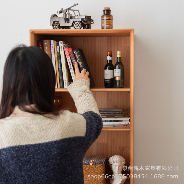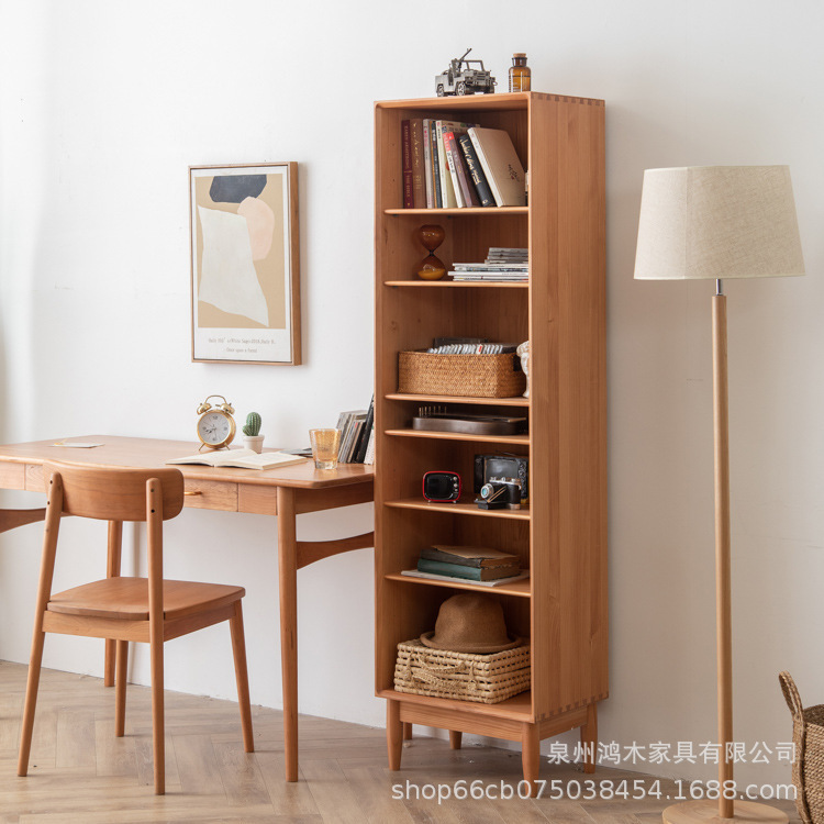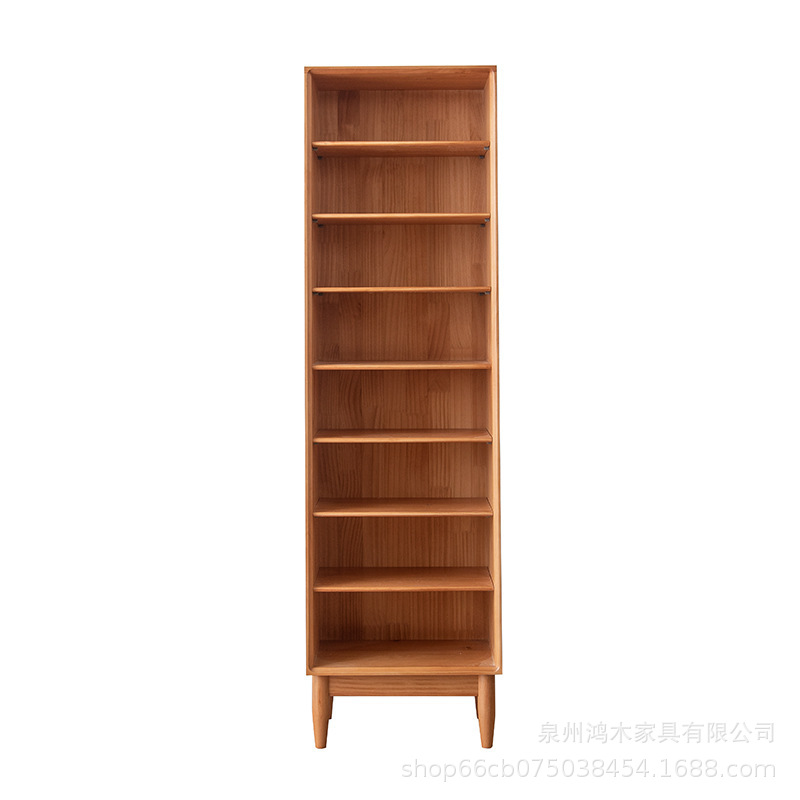 实木书架客厅落地靠墙转角置物架家用日式窄立柜胡桃木色展示书柜
