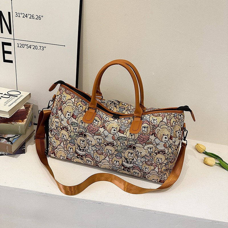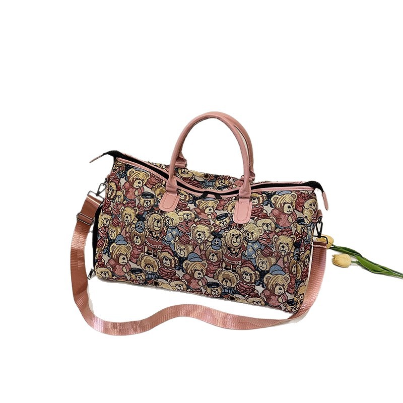 旅行包短途手提旅游行李包运动训练健身包印花小熊登机出差收纳包