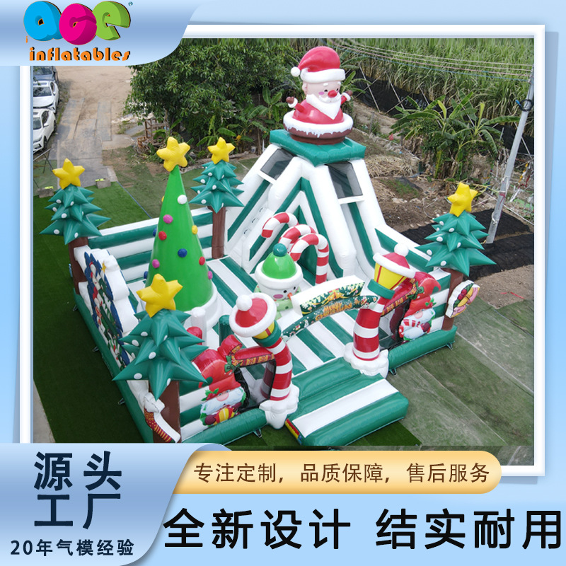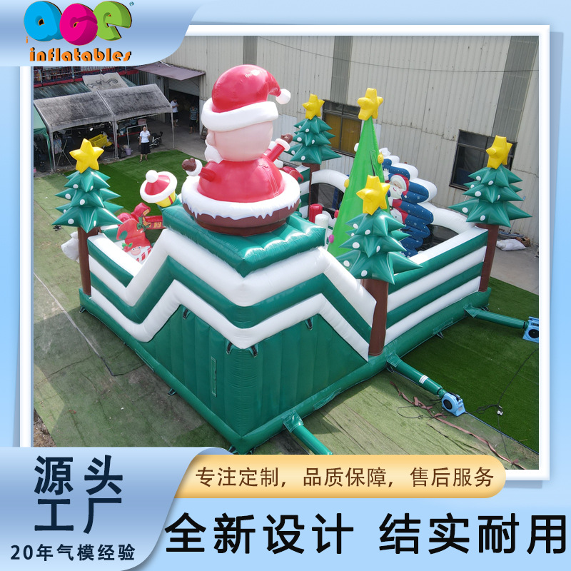 源头工厂跨境充气网红圣诞树老人滑梯蹦床滑梯